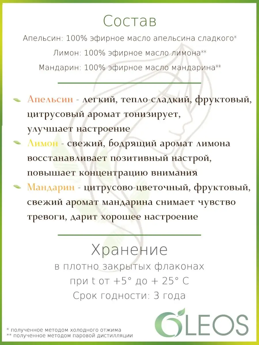 Oleos Набор 100% натуральных эфирных масел "Апельсин сладкий, лимон, мандарин"