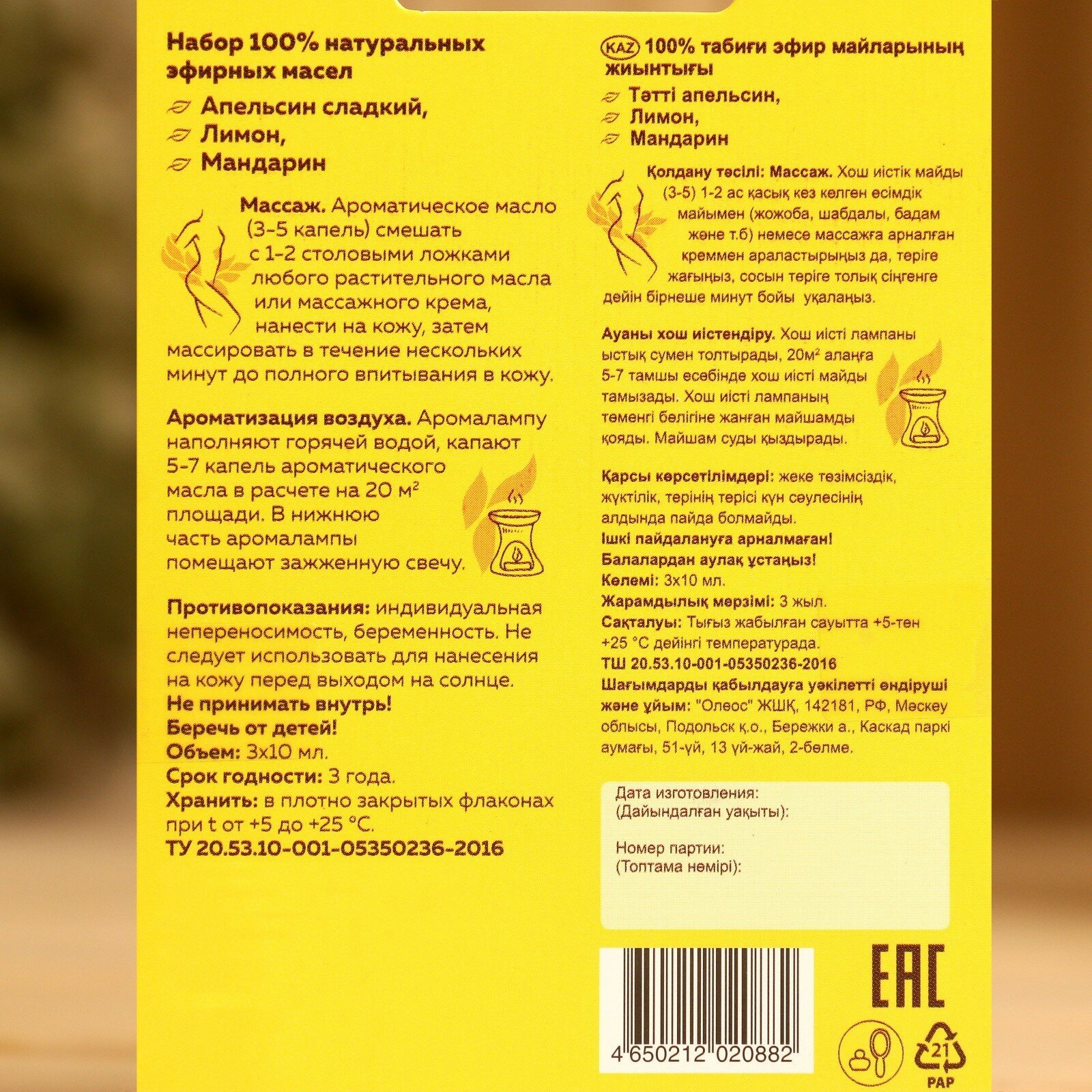 Набор 100% натуральных эфирных масел «Апельсин сладкий»,«Лимон», «Мандарин» 9863792