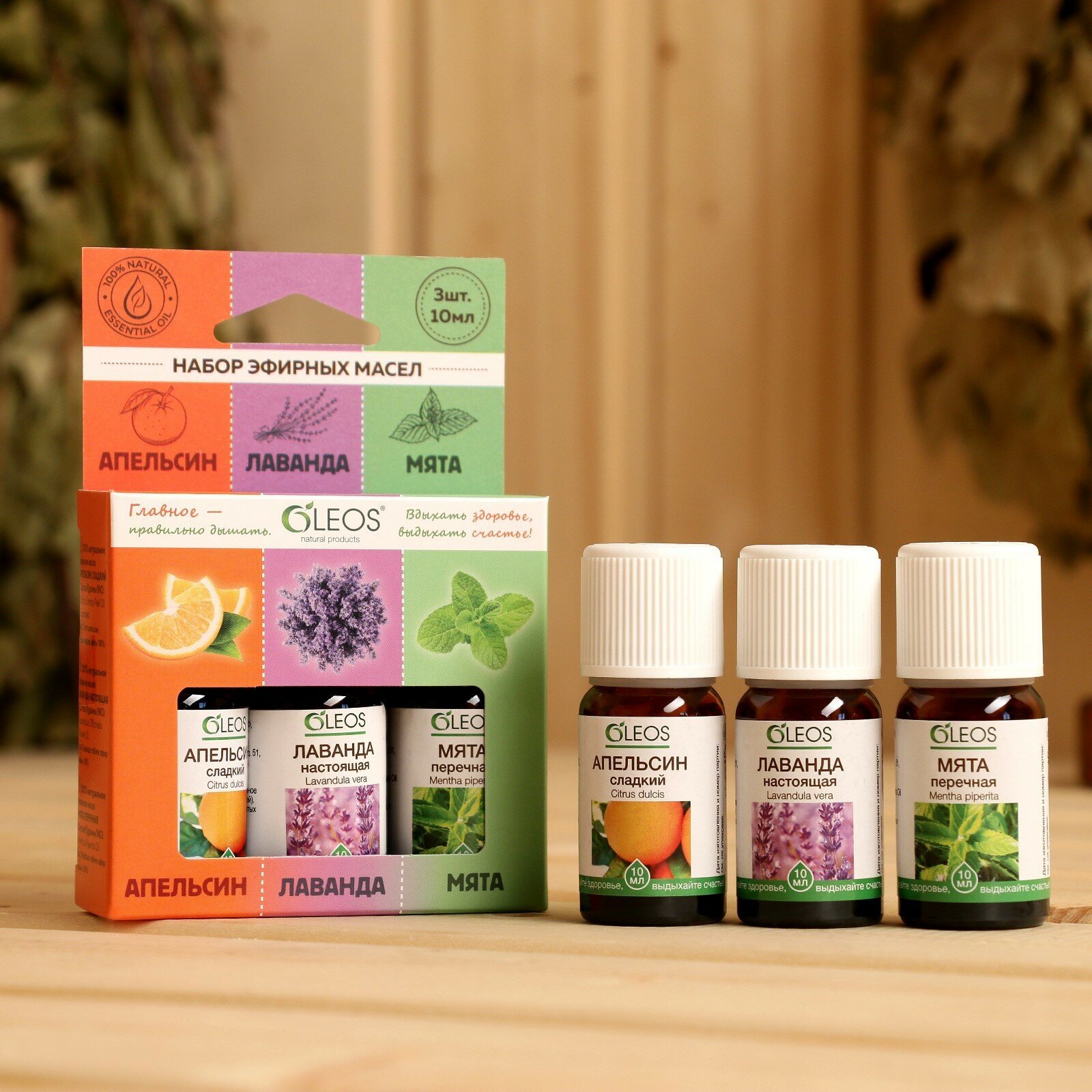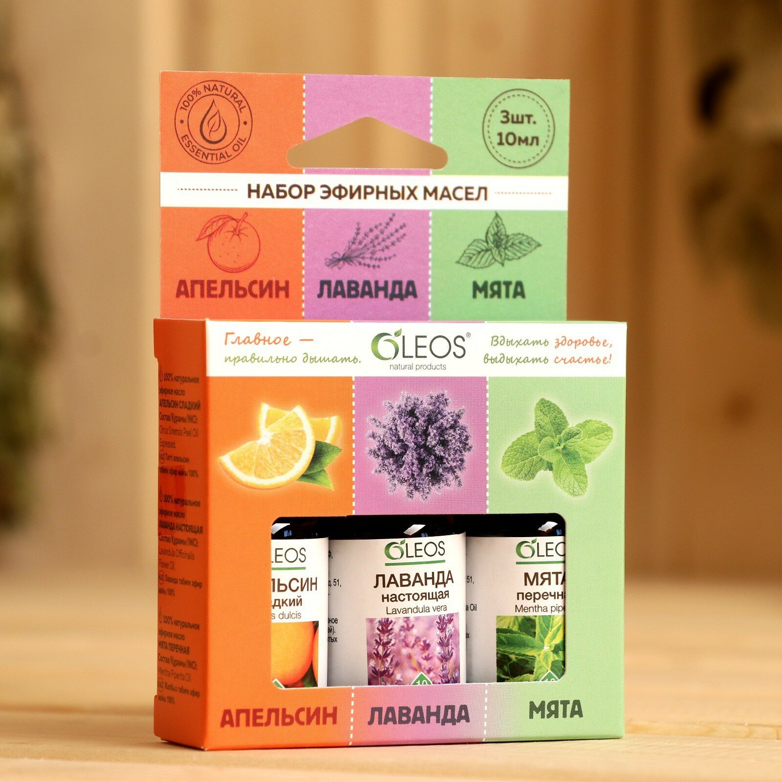 Набор 100% натуральных эфирных масел "Апельсин, лаванда, мята перечная"