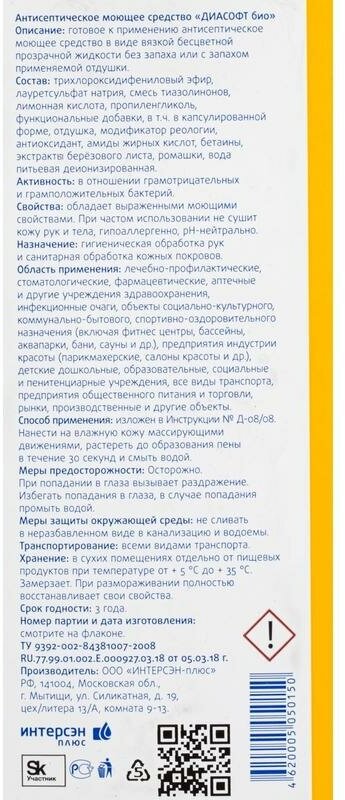 Диасофт био (500 мл) антисептическое моющее средство для рук