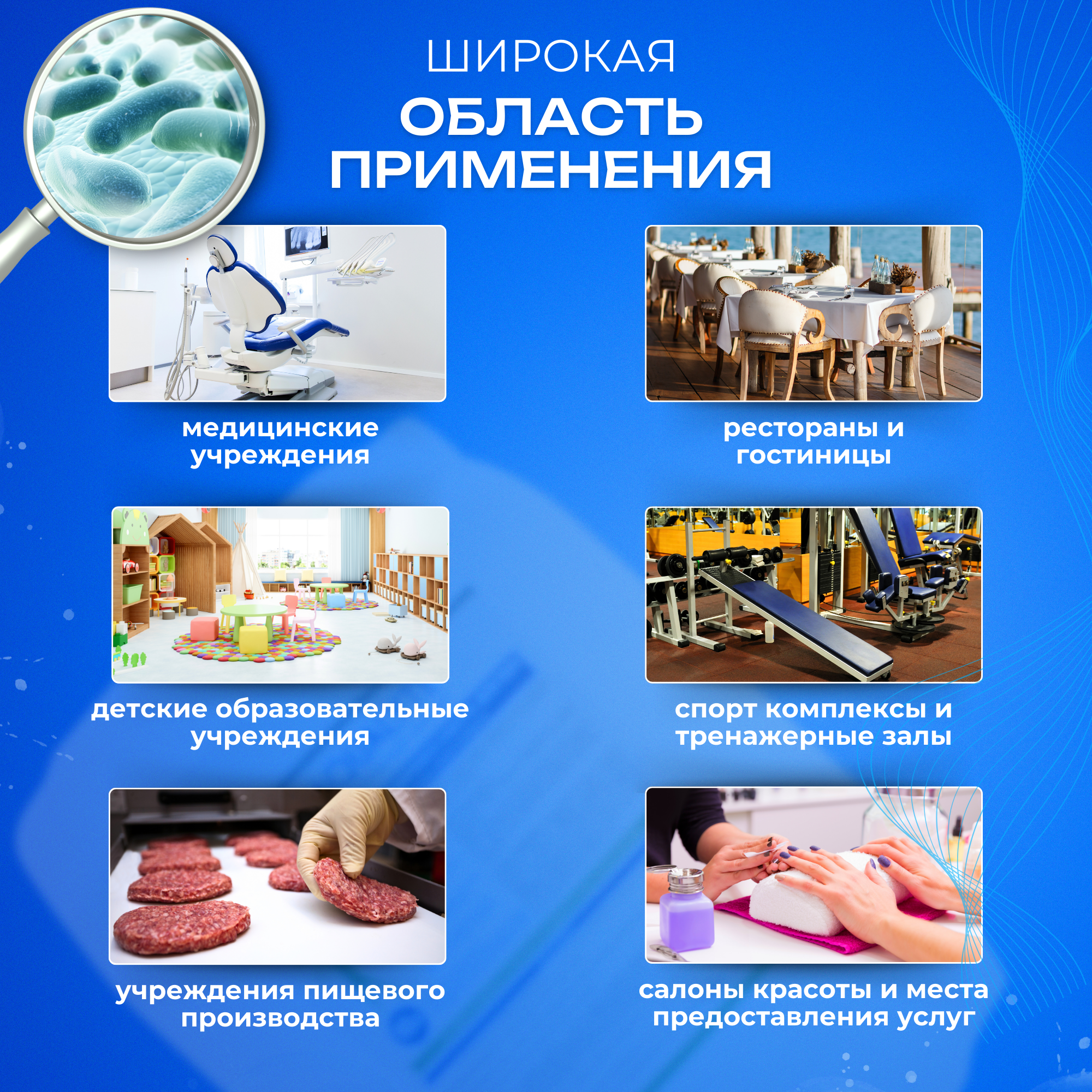 | Способ применения | обеззараживание проводится посредством распыления средства на поверхности, на руки, в воздушное пространство помещения; обработка поверхностей: распылите средство на поверхность от 3 до 4 впрысков на 1 м2 поверхности или предмета, оставьте на 2 минуты, затем протрите насухо; обработка воздушного пространства: распылите средство по воздушному пространству квартиры или офиса (от 7 до 10 впрысков на площадь 20 м2); для профилактики проводите обработку 1 раз в день, в период эпидемий повторяйте 3-5 раз в день |