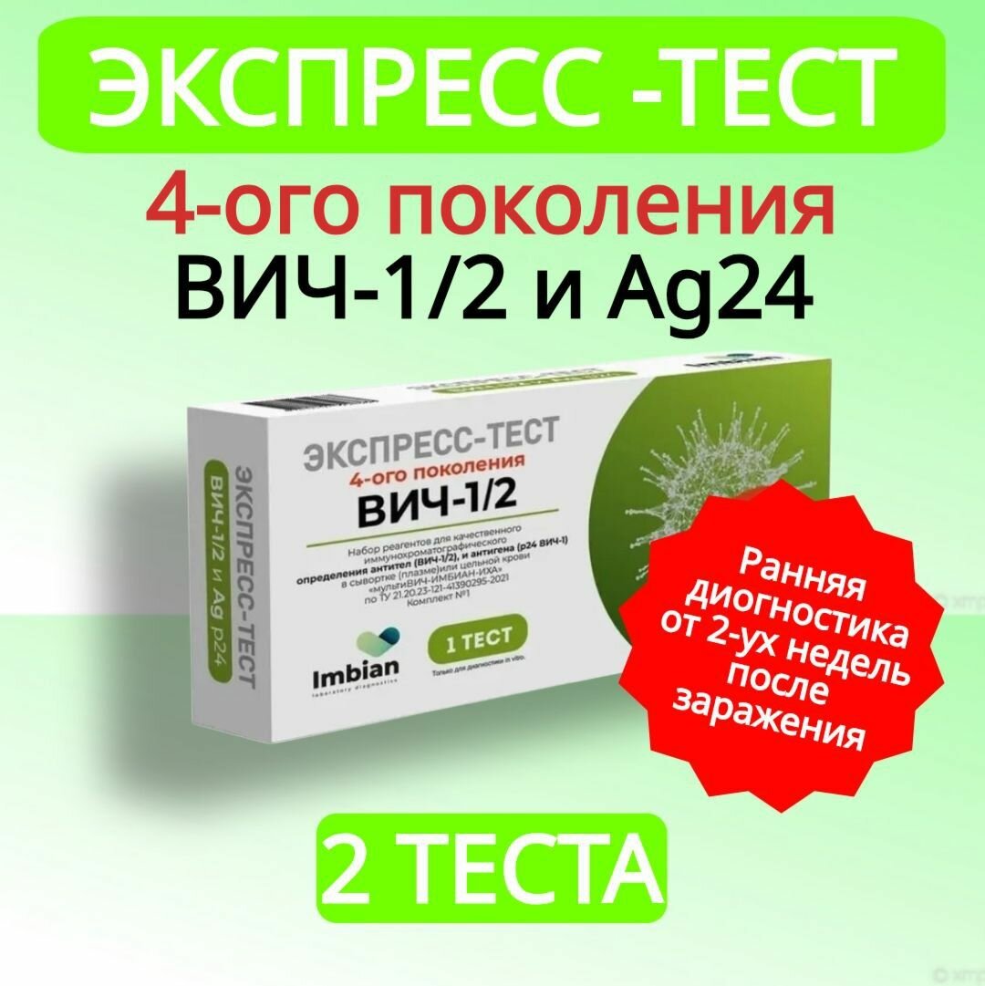 Экспресс тест имбиан на ВИЧ, 2 теста, комплект из 2х упаковок, анализы на ВИЧ