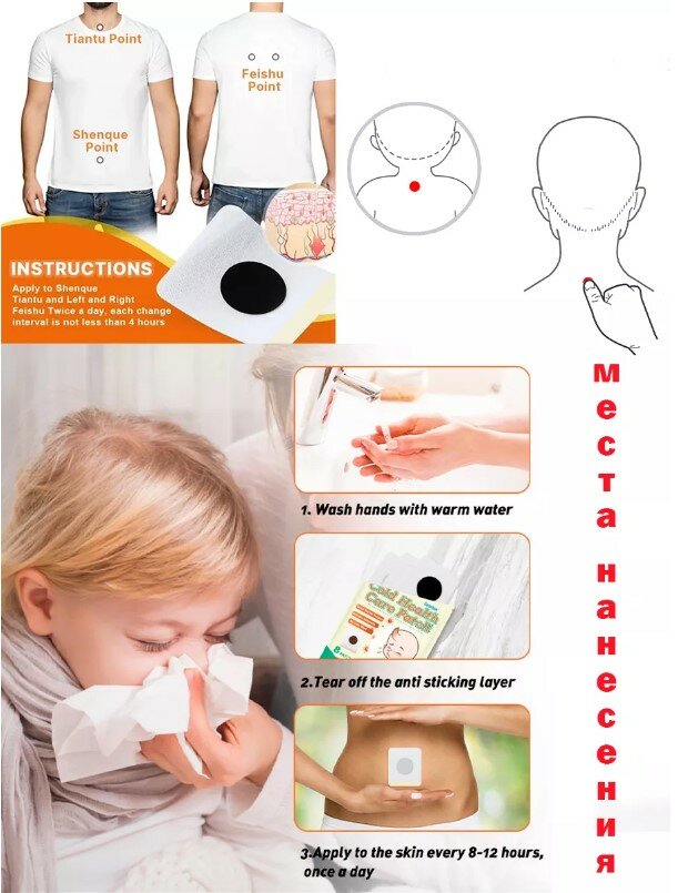 Пластыри от кашля и насморка Sumifun, 8 штук интересное: