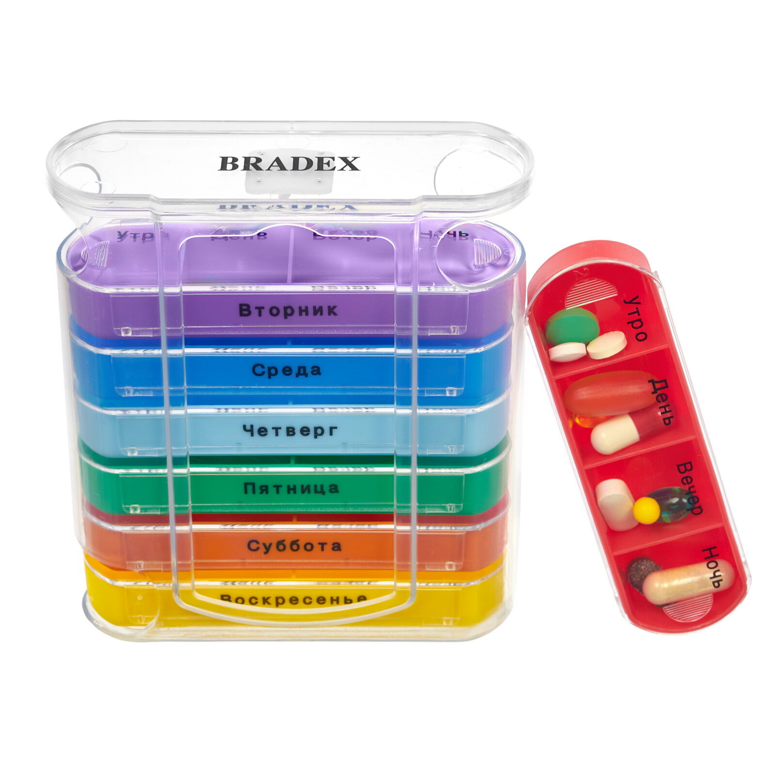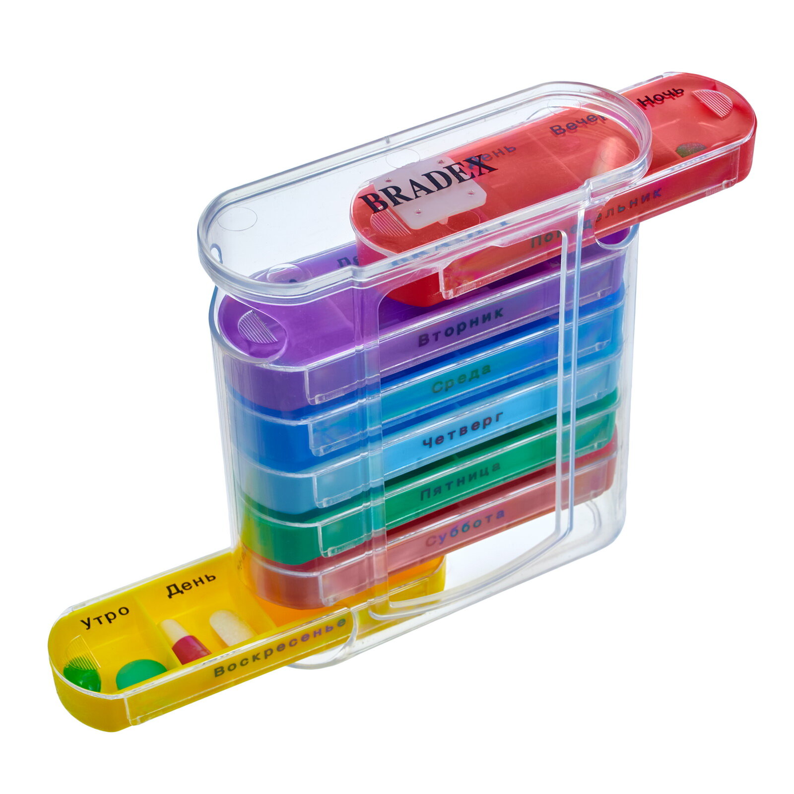 Купить Таблетница на неделю Bradex, контейнер для таблеток Неделька, органайзер для хранения лекарств на день, утро, вечер, 7 дней, аптечка дорожная