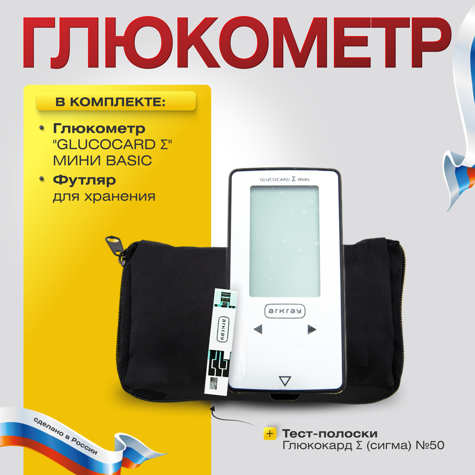 Набор: Глюкометр для измерения уровня глюкозы"GLUCOCARD Σ " мини BASIC+Тест-полоски Глюкокард Σ (сигма) №50 интересное: