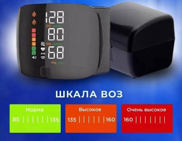 Премиум-класса. Тонометр автоматический на запястье , русская озвучка