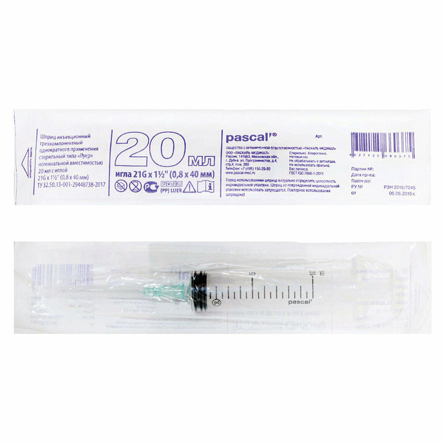 Шприц 3-х компонентный с иглой Pascal'/Паскаль 0,8x40мм 20мл 5шт интересное: