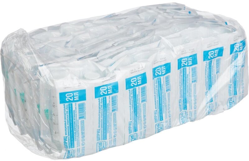 Шприц медицинский двухкомпонентный 20 мл, 21G, 0.8 x 40 мм, МПК Елец, Россия./В упаковке шт: 6