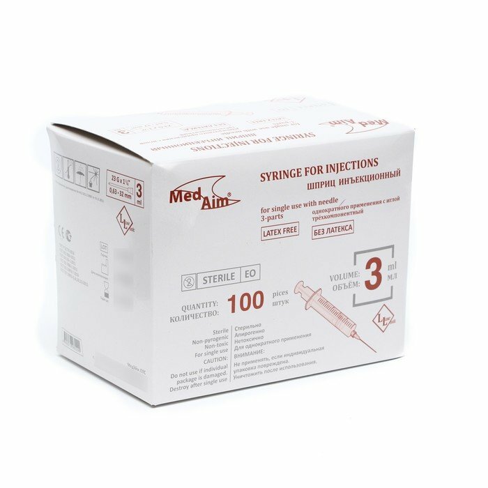 Ниже Вы можете прочитать отзывы на Шприц инъекционный однократного применения 3-х компонентный MedAim 3 мл с иглой 0,63х32мм (23Gх1 1/4") Луер Лок 100 штук, ознакомится с подробными характеристиками, посмотреть интересные обзоры и фотографии на Шприц инъекционный однократного применения 3-х компонентный MedAim 3 мл с иглой 0,63х32мм (23Gх1 1/4") Луер Лок 100 штук.