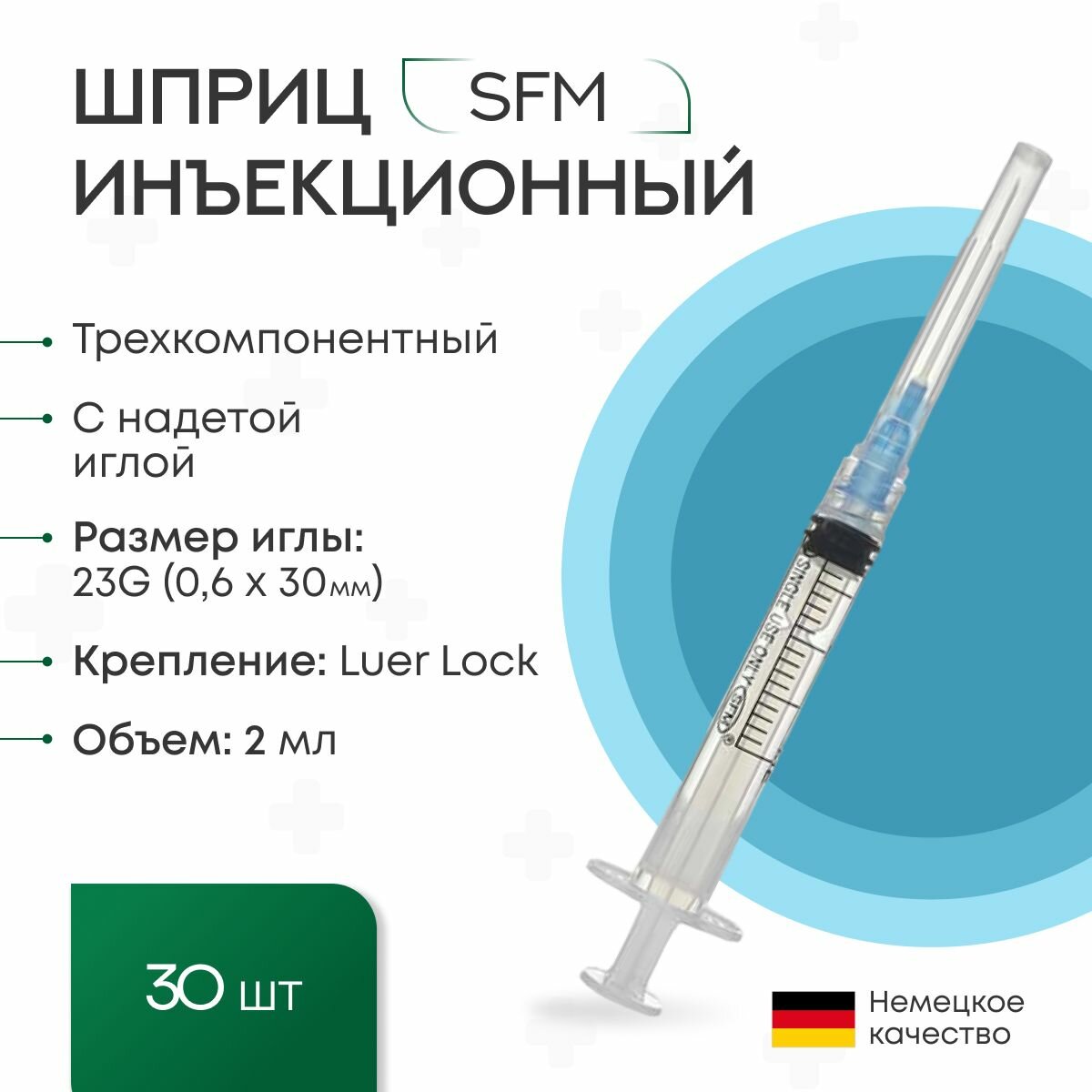 Шприц 2 мл Luer Lock (трёхкомп с надетой иглой 0,6 x 30 - 23G SFM 30 шт. интересное: