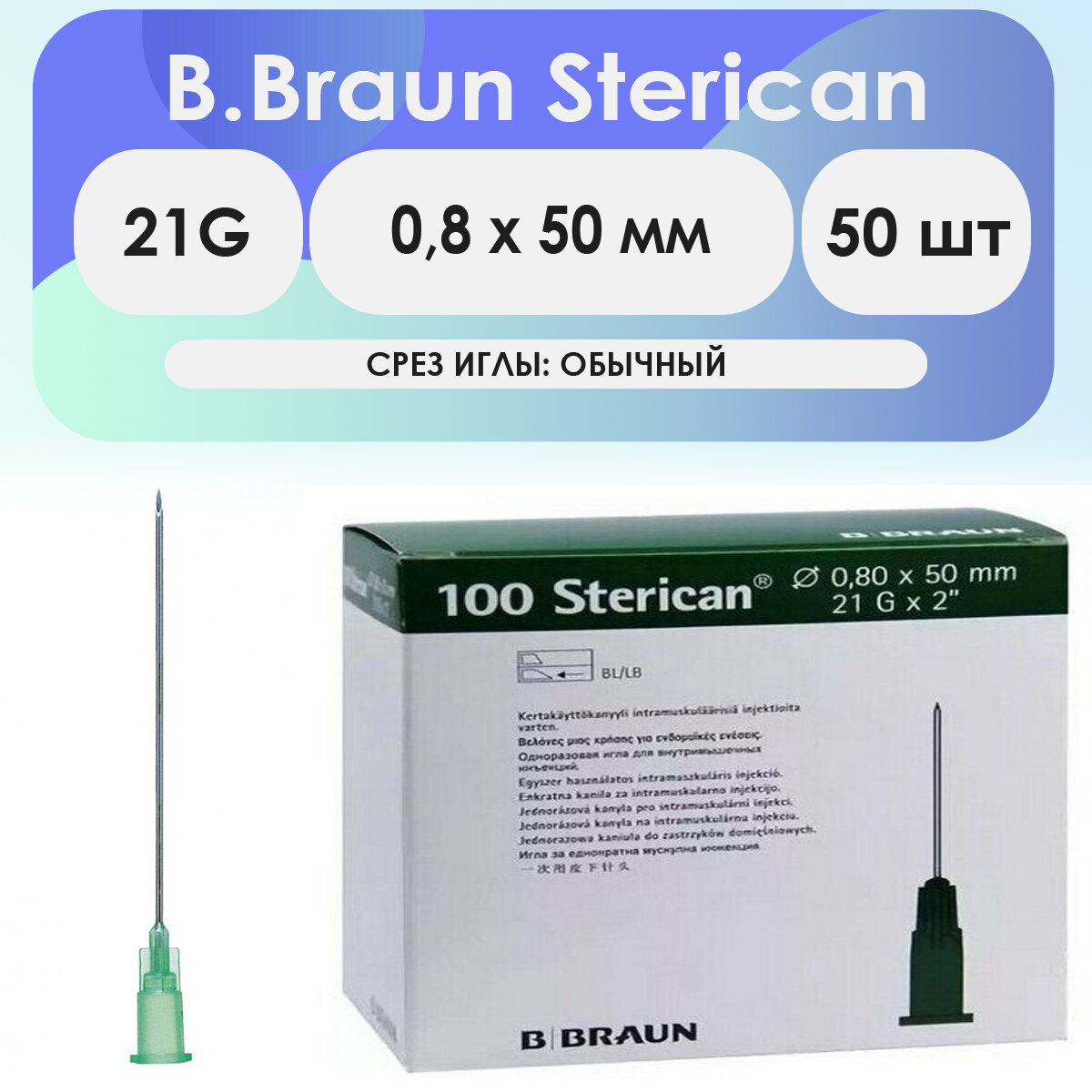 Игла инъекционная B. Braun Sterican 21G (0,8 х 50) - 50 шт интересное:
