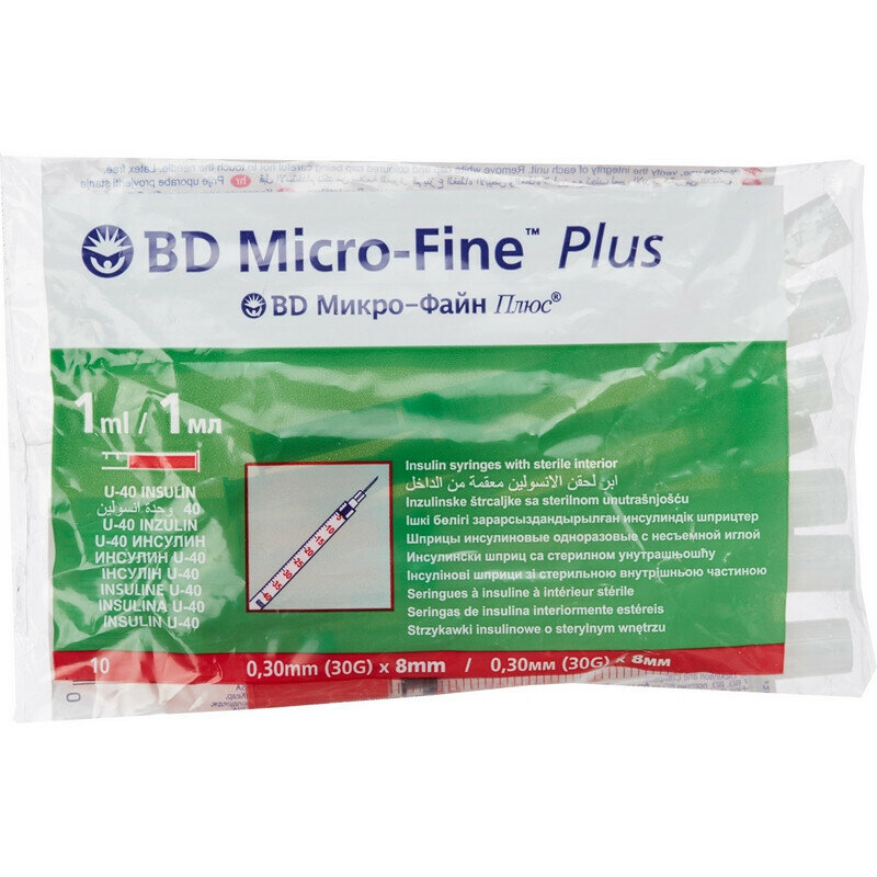 Шприц инсулиновый BD Micro-Fine Plus 1мл/U-40 30G (0,30мм x 8мм) 10 шт интересное: