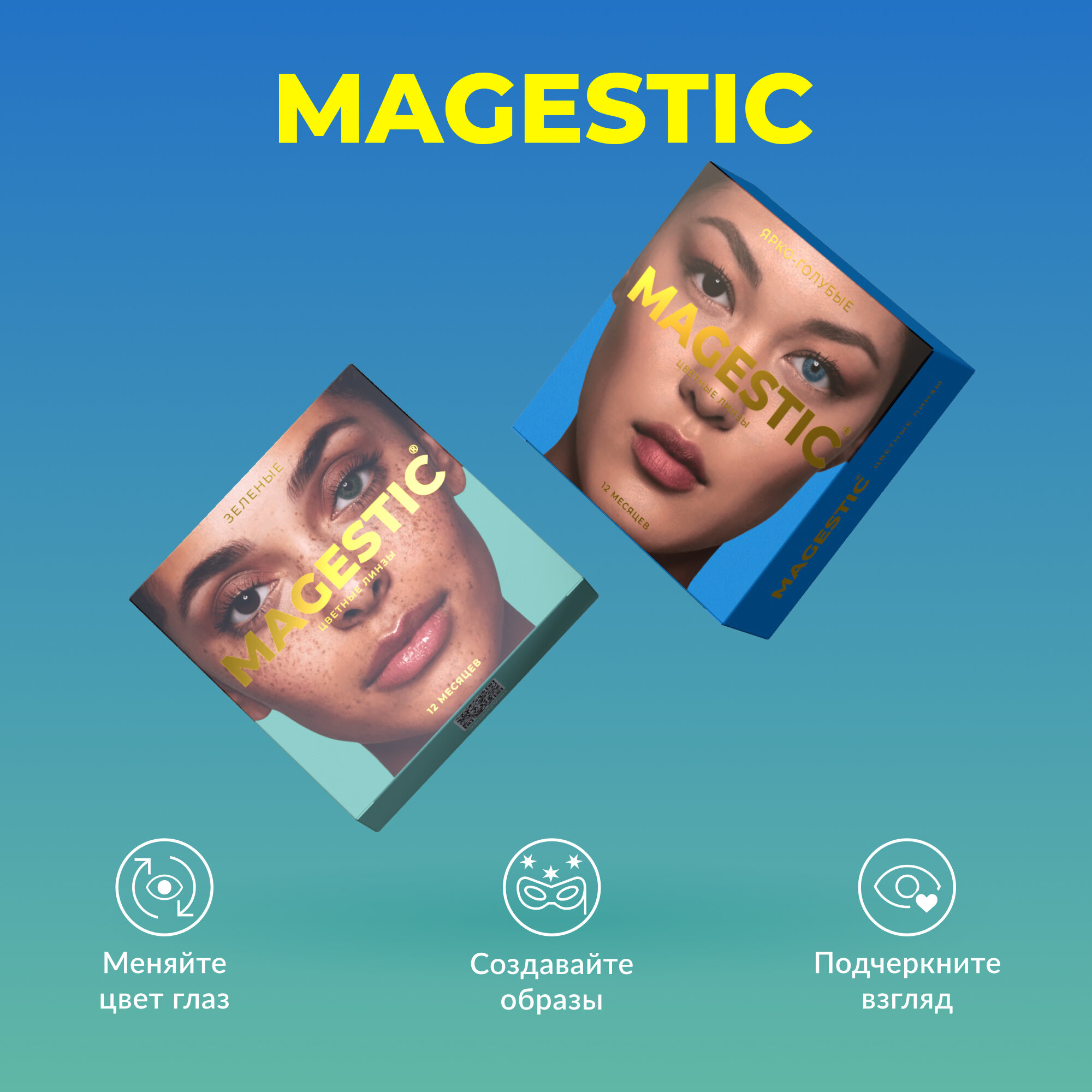 Цветные контактные линзы MAGESTIC зеленые+ярко-голубые, 2 пары