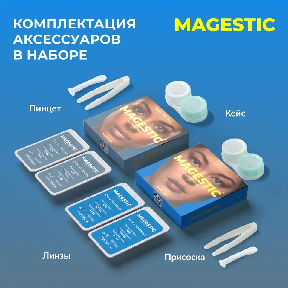 Купить Цветные серо-голубые + ярко-голубые контактные линзы для глаз MAGESTIC 2 пары, 12 месяцев, 0.00, диаметр 14,2 мм, кривизна 8,6 мм