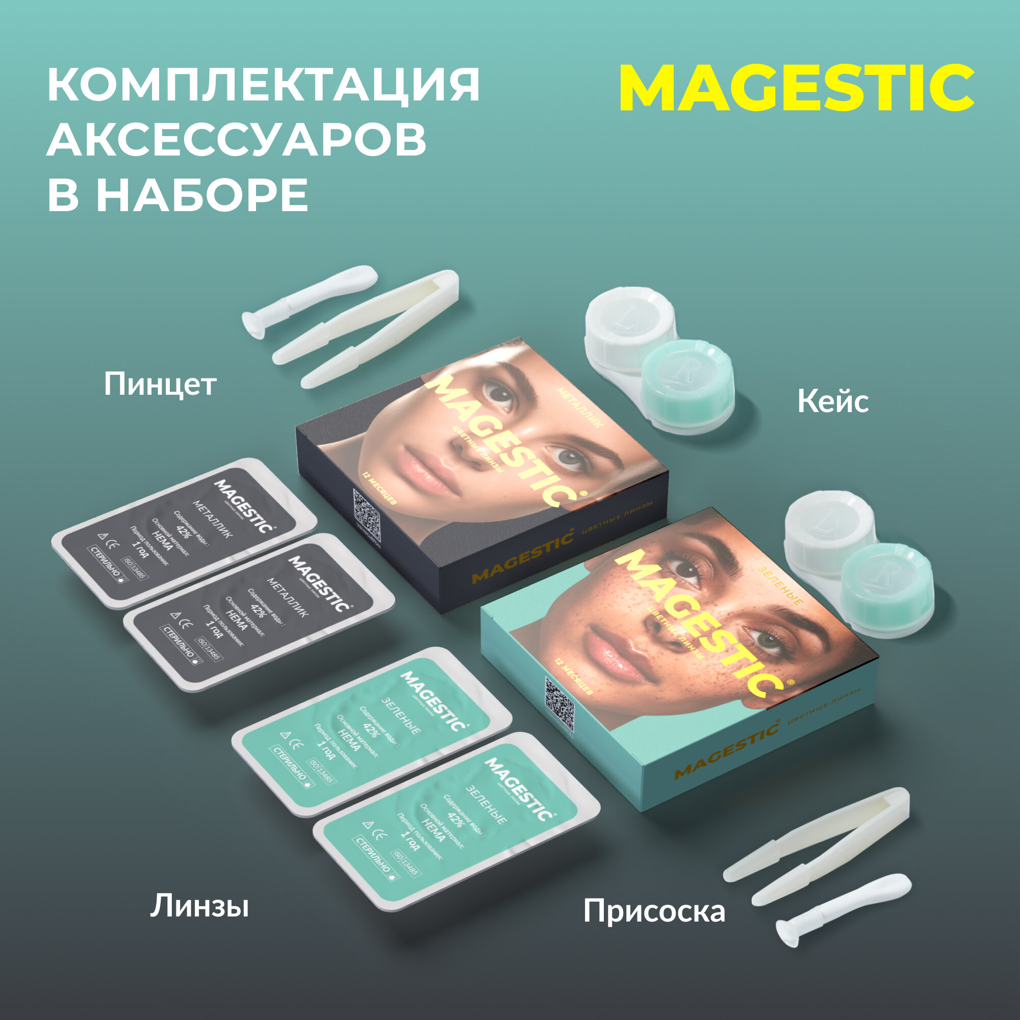 | Дополнительная информация | в комплекте 2 пары (4 шт) линз разного цвета, контейнер, пинцет, ложка |