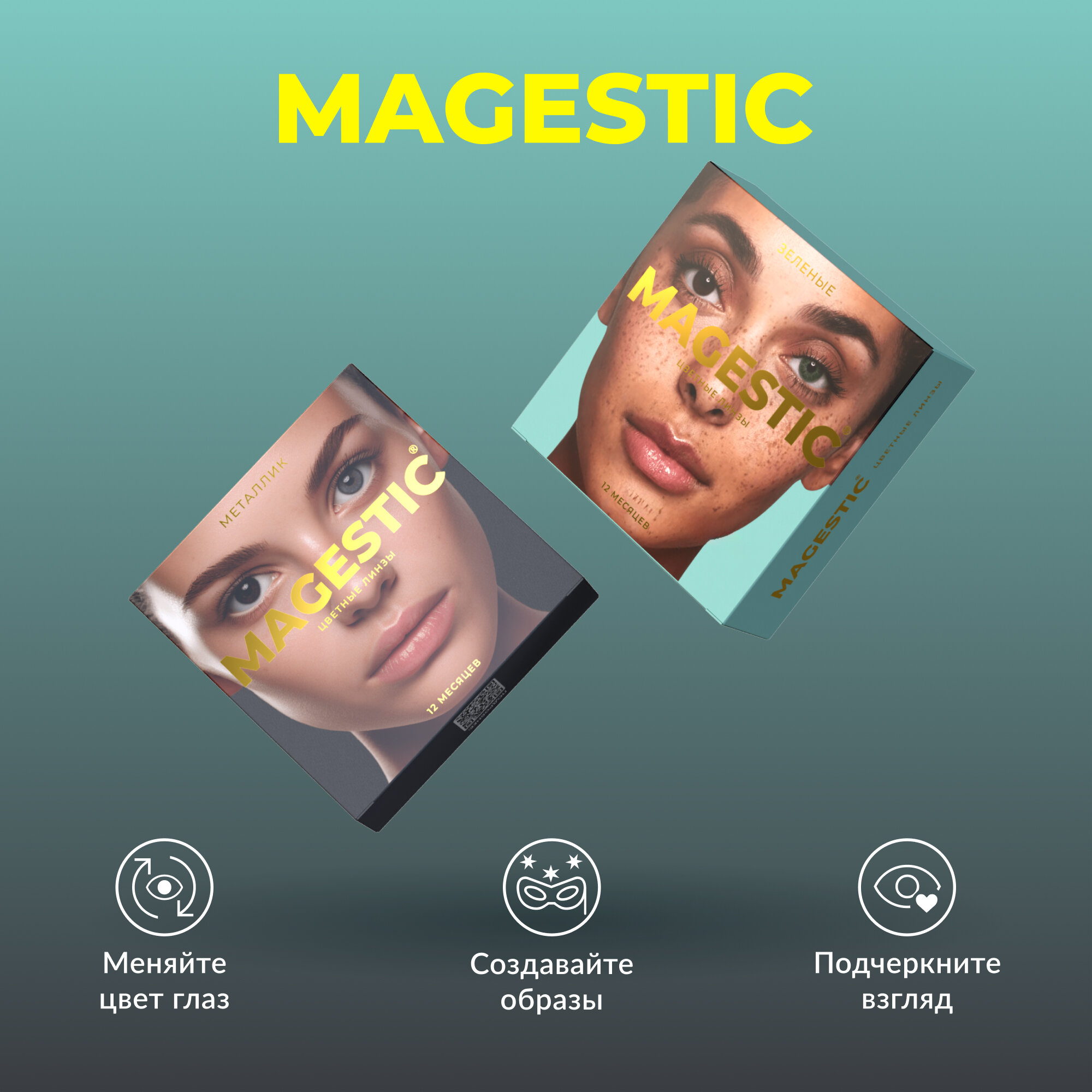 Купить Цветные металлик + зеленые контактные линзы для глаз MAGESTIC 2 пары, 12 месяцев, 0.00, кривизна 8,6 мм