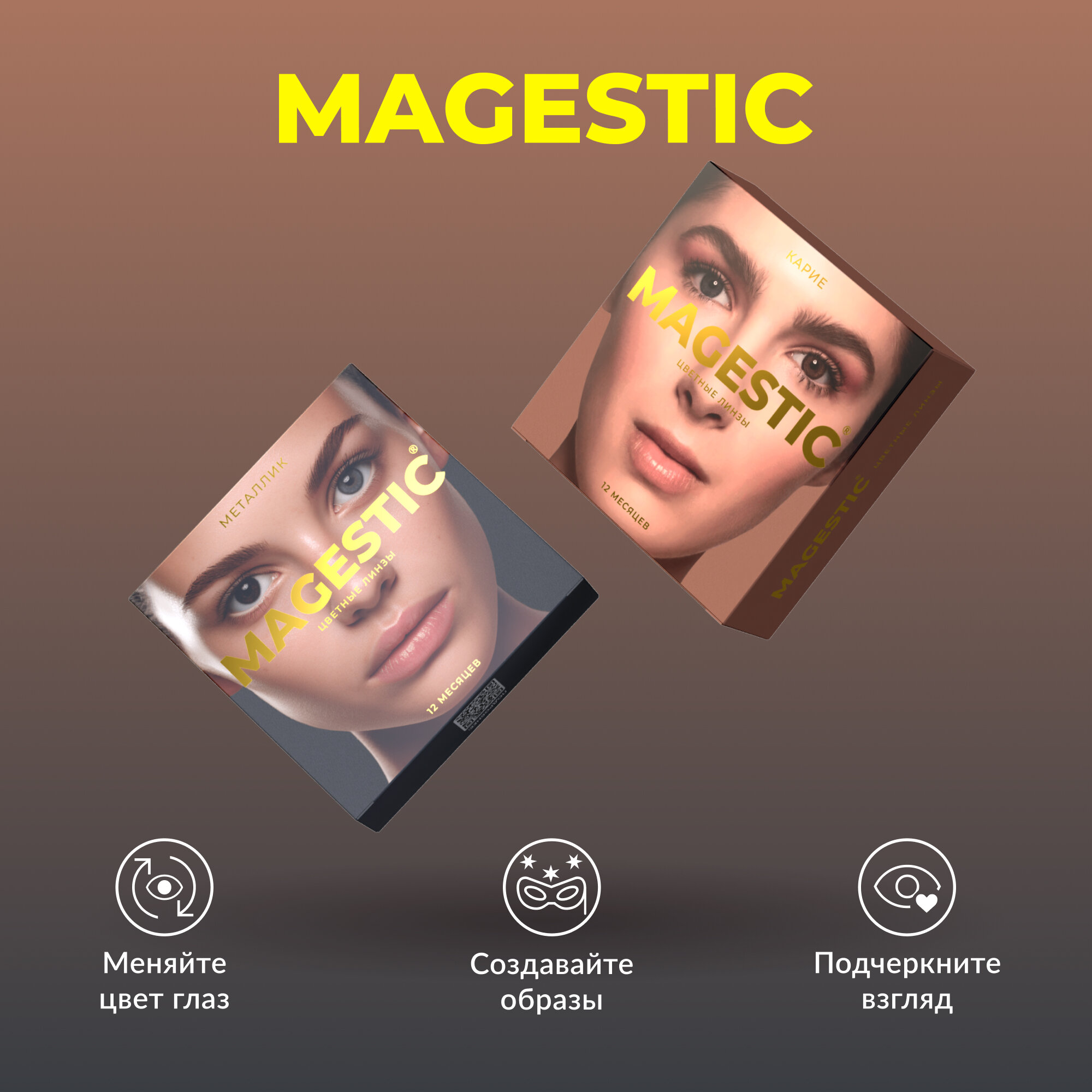 Купить Цветные металлик + карие контактные линзы для глаз MAGESTIC 2 пары, 12 месяцев, 0.00, кривизна 8,6 мм
