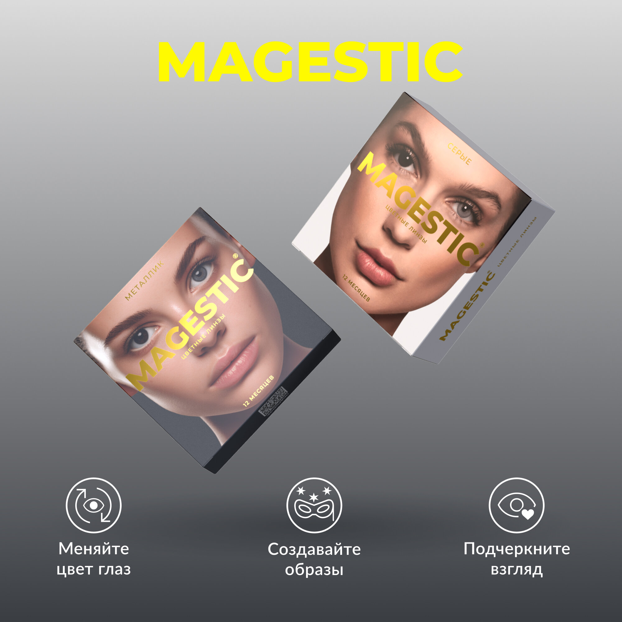 Купить Цветные металлик + серые контактные линзы для глаз MAGESTIC 2 пары, 12 месяцев, 0.00, кривизна 8,6 мм