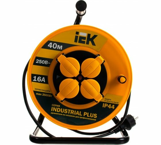 Удлинитель на катушке 4х40м с заземл. 16А IP44 УК40 "Industrial plus" с термозащ. 3х1.5, IEK WKP15-16-04-40-44 (1 шт.)