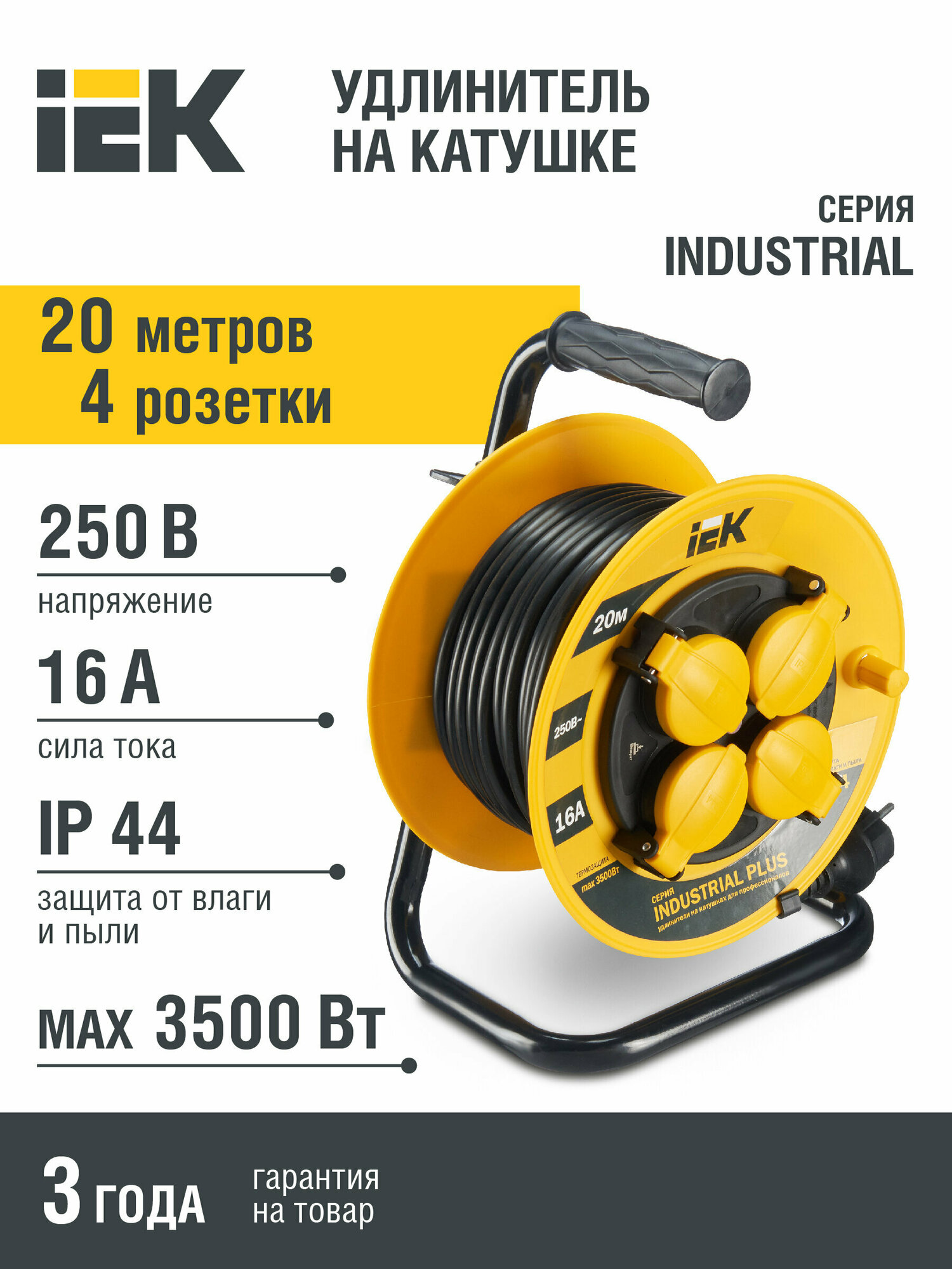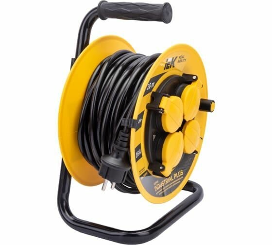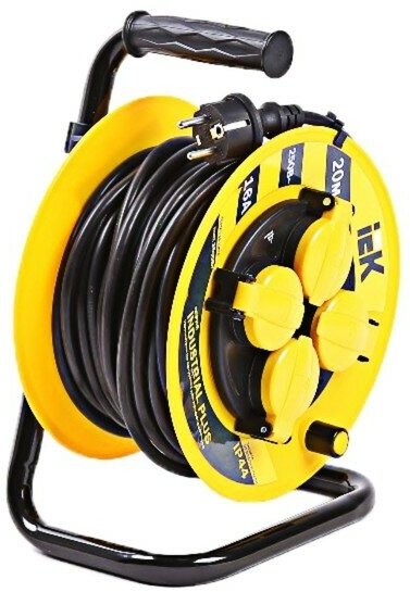 Удлинитель на катушке IEK Industrial Plus УК20, 4 розетки, с заземлением, 3 x 1,5 мм², IP44, 20 м