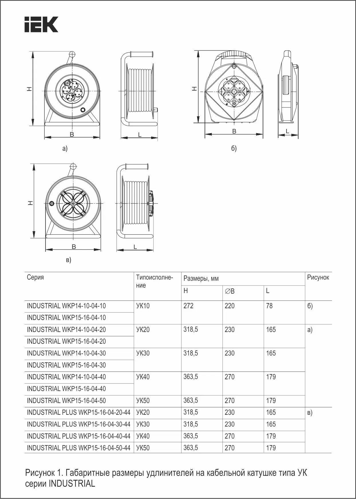 Купить Удлинитель на катушке IEK Industrial УК20, 4 розетки, с т/з, с заземлением, 3 x 1,5 мм², 20 м