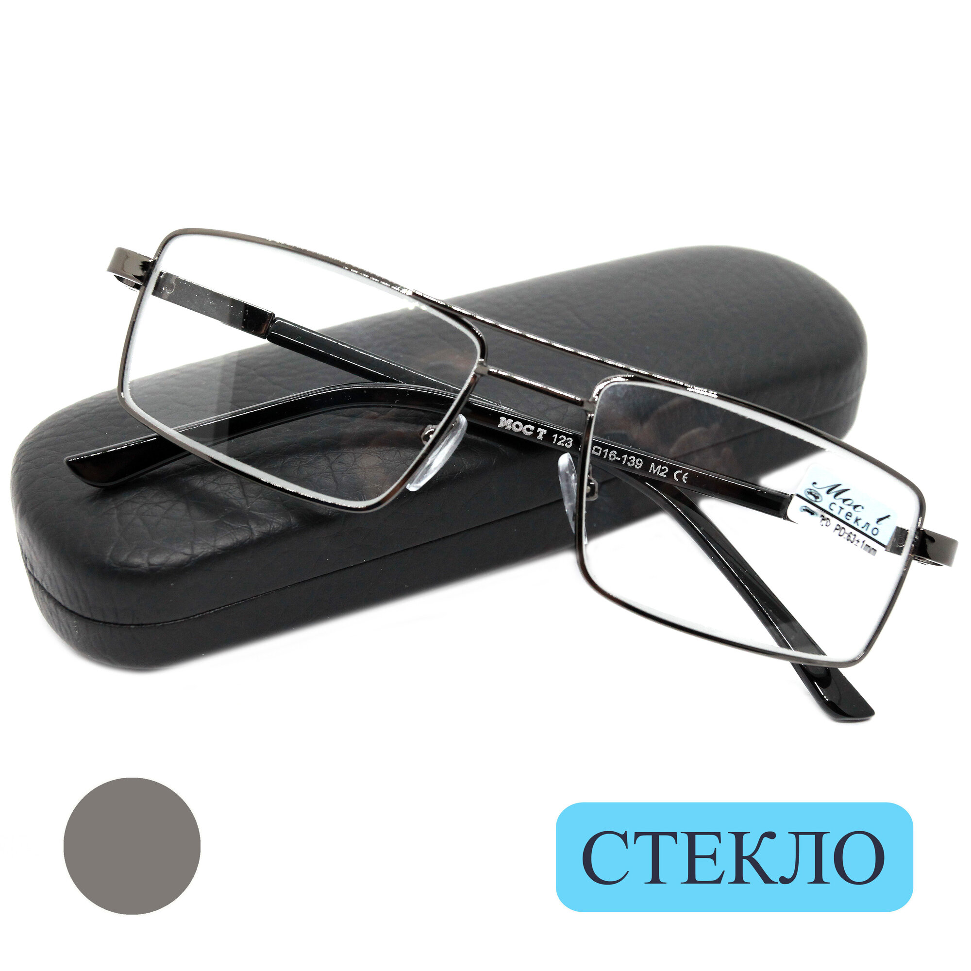 Готовые очки мужские со стеклом (+2.75) с футляром, мост 123 M1, линза стекло, цвет серый, РЦ 62-64