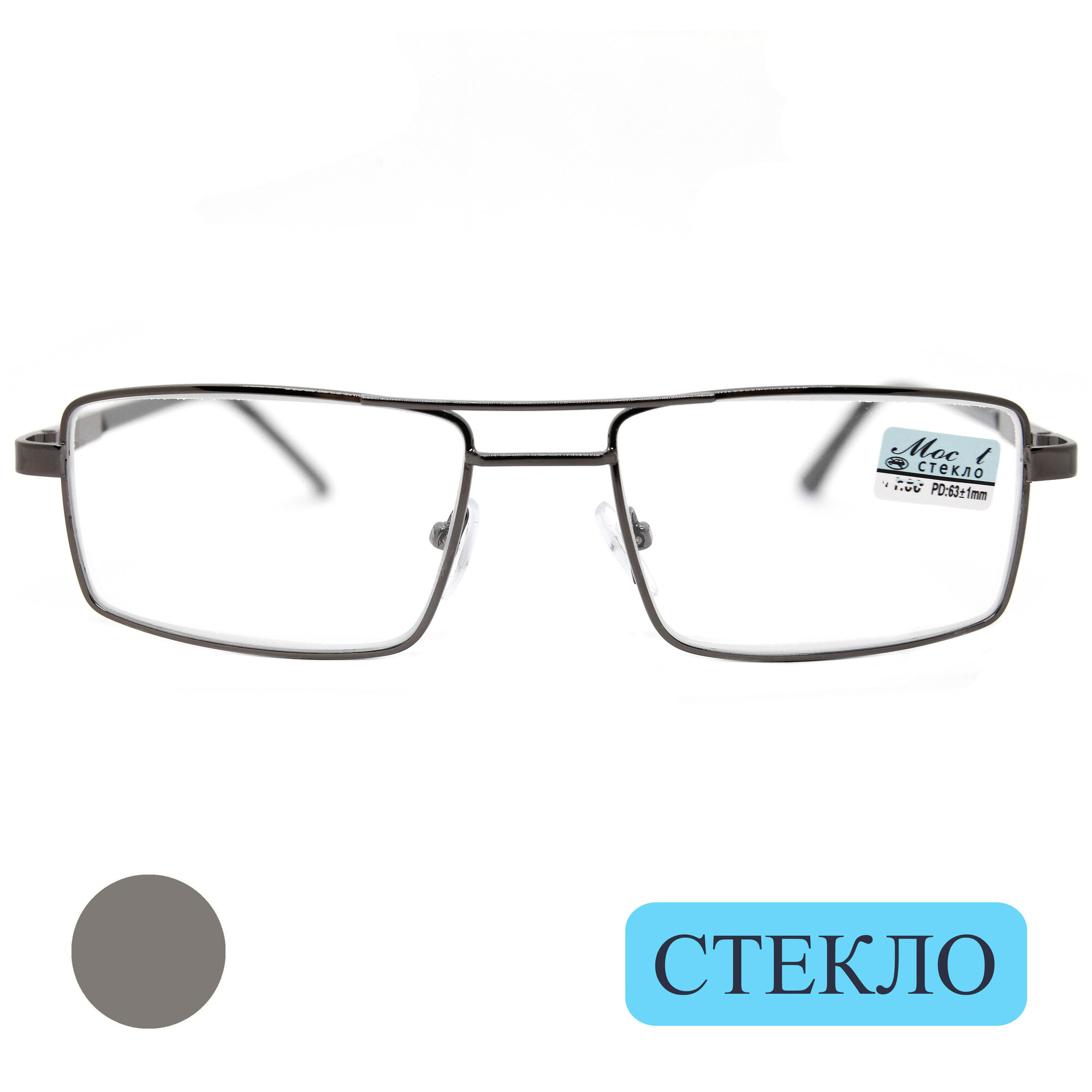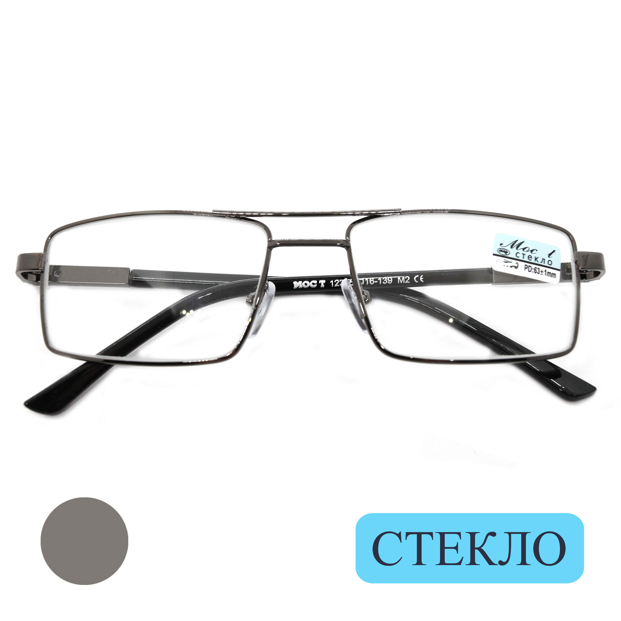 Купить Готовые очки стекло металлические (+0.50) с футляром, мост 123 M1, линза стекло, цвет серый, РЦ62-64