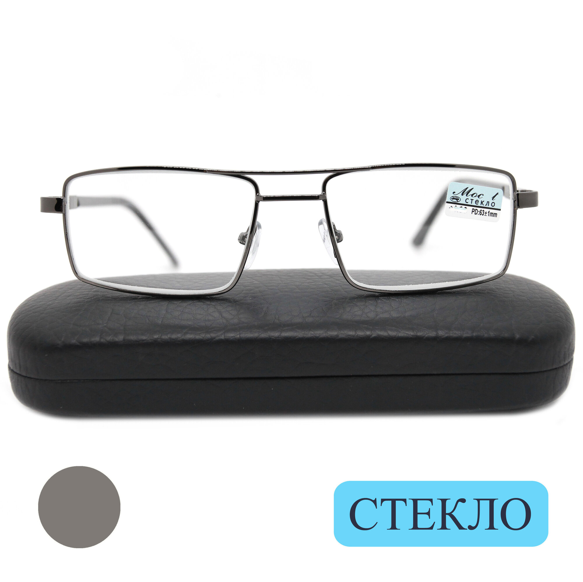 Очки для чтения мужские с футляром (+1.50) мост 123 M1, линза стекло, цвет серый, РЦ62-64