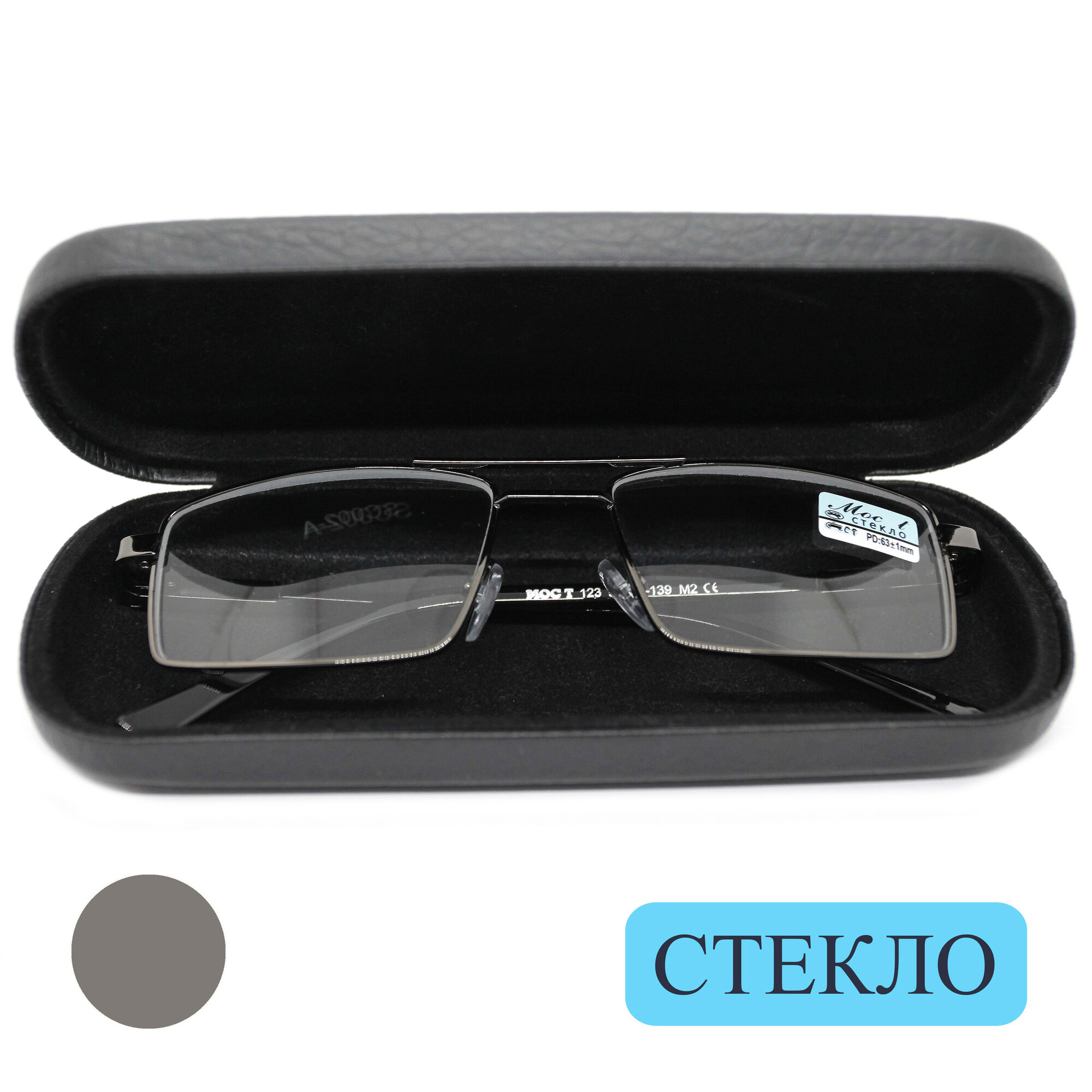 Мужские очки для чтения из со стеклом (+1.75) с футляром, мост 123 M1, линза стекло, цвет серый, РЦ 62-64