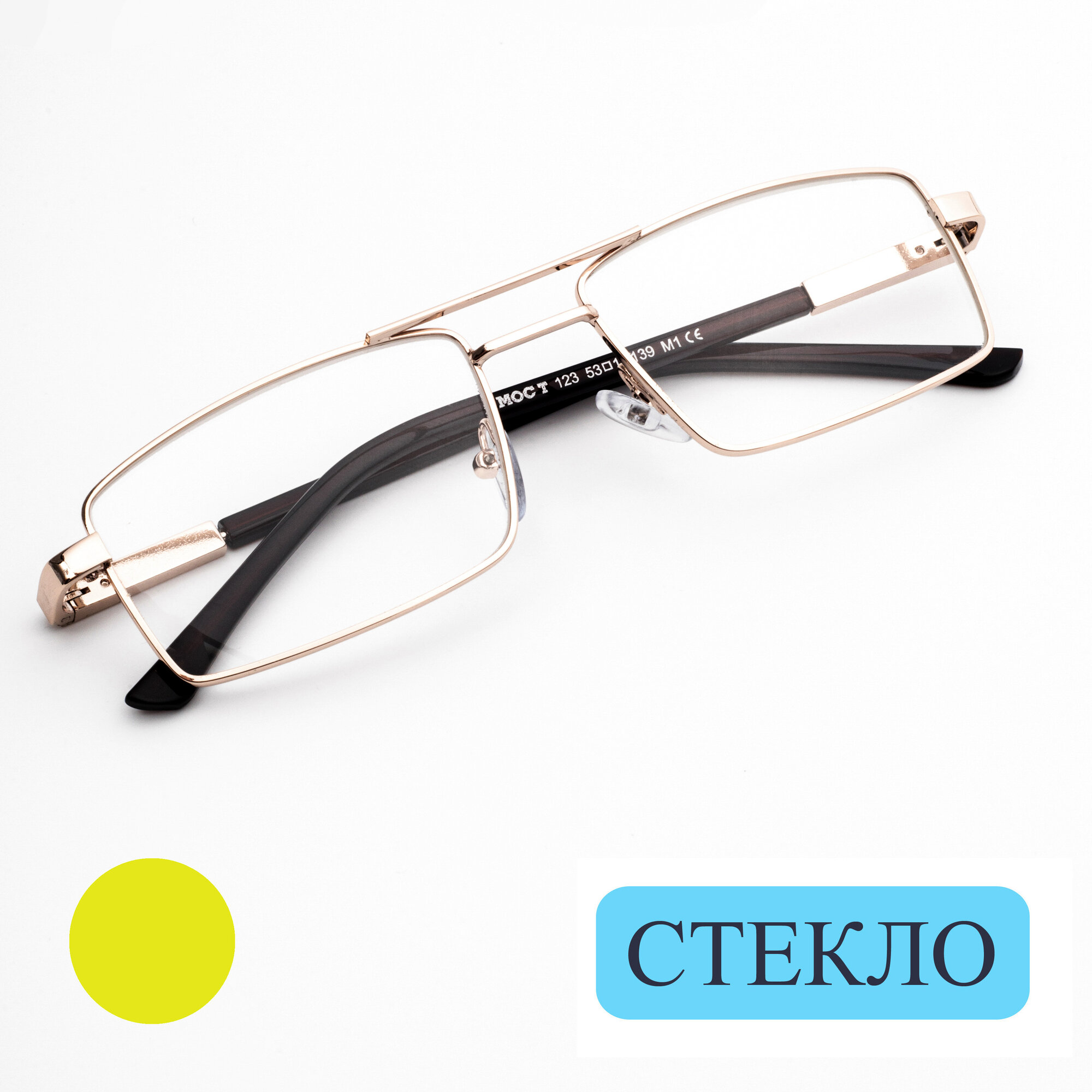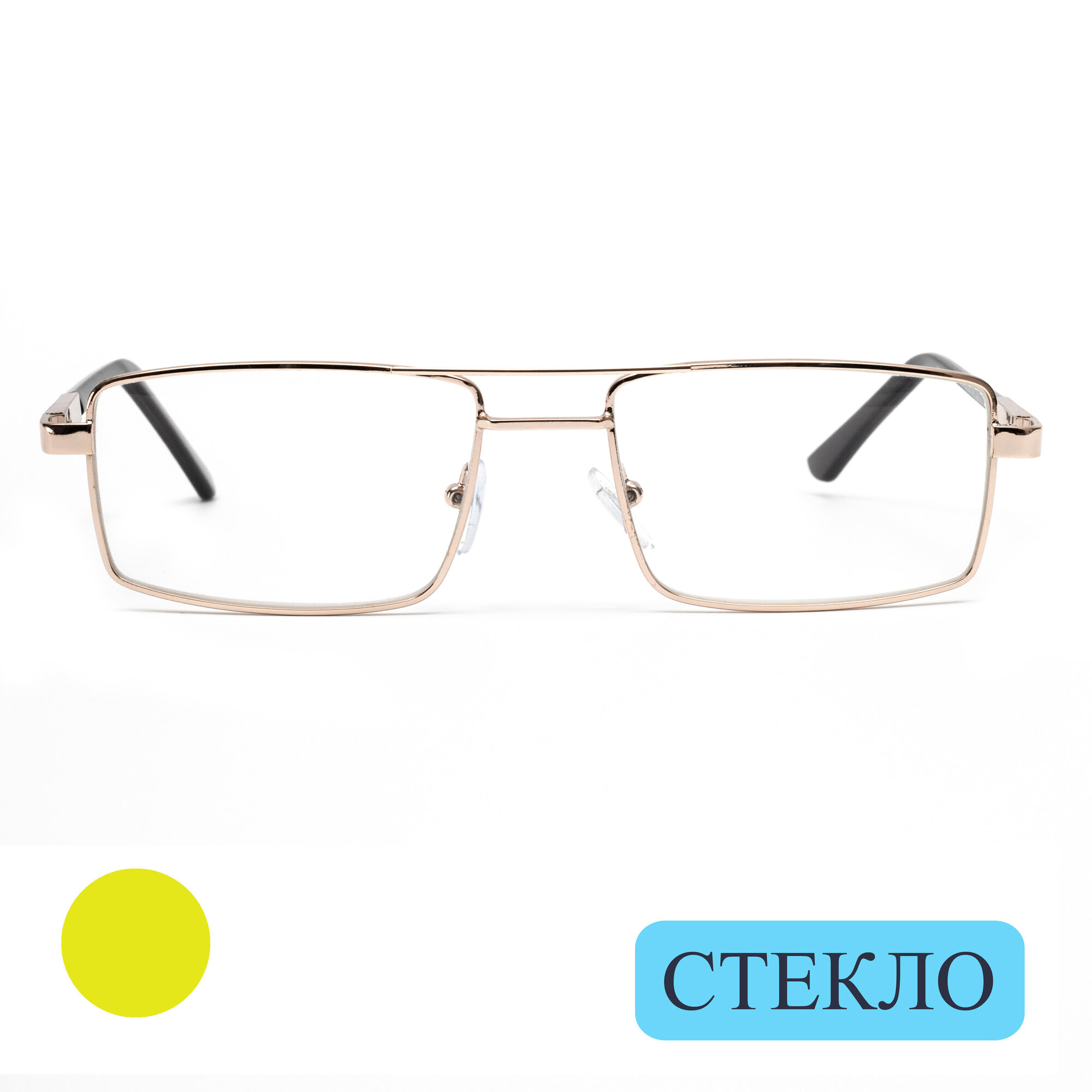 Очки для чтения мужские с футляром (+1.50) мост 123 M1, линза стекло, цвет золотой, РЦ62-64