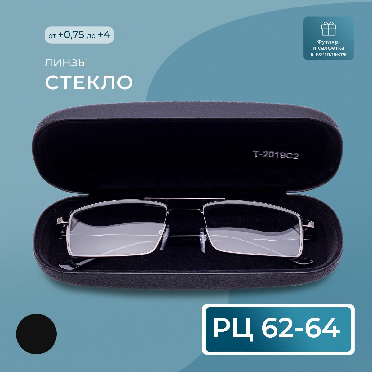 Готовые очки стекло металлические (+0.75) с футляром, мост 123 M1, линза стекло, цвет серый, РЦ62-64