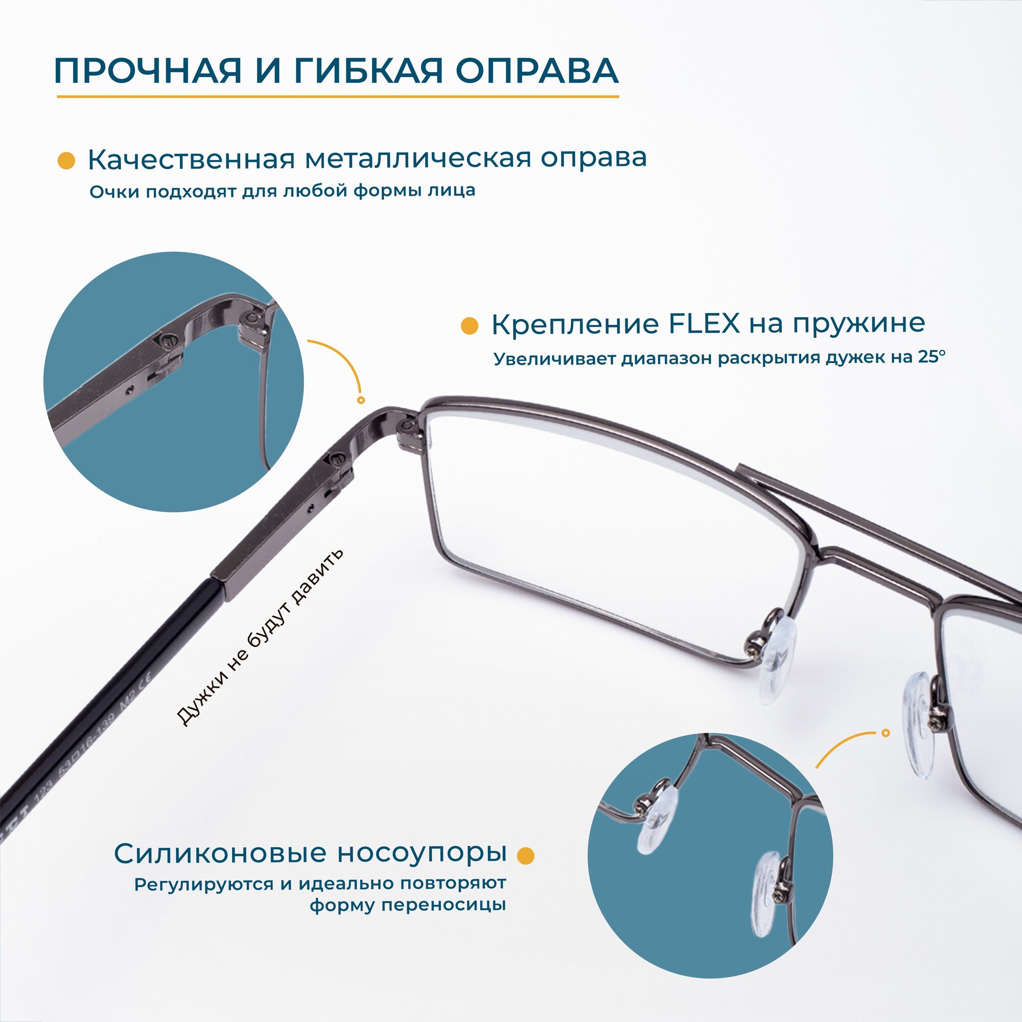 | Особенности | регулируемые носовые упоры / с носоупорами / салфетка в комплекте / флексовое крепление дужек / футляр в комплекте |