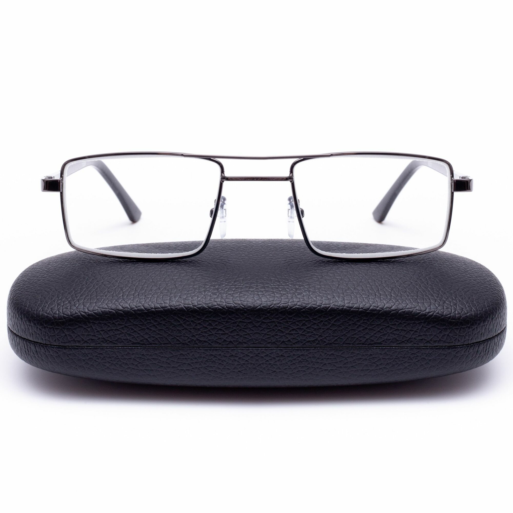 Корригирующие очки для чтения металл с футляром (+2.00) мост 123 M1, линза стекло, цвет серый, РЦ62-64