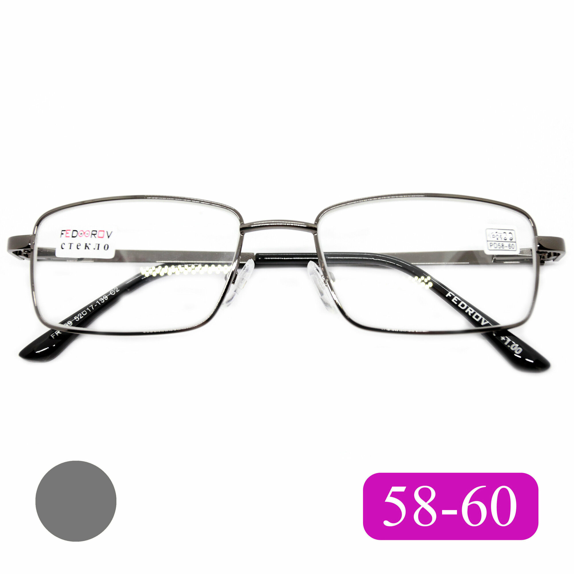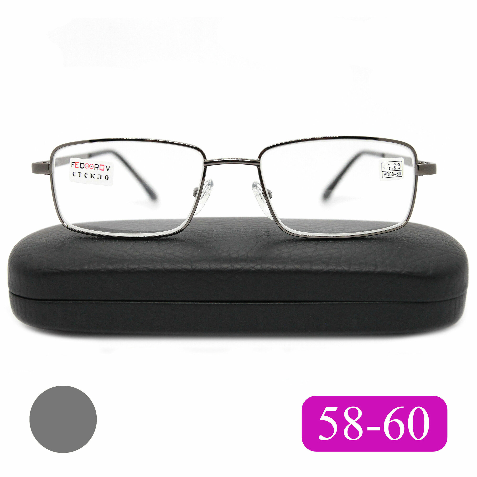 Готовые очки стекло расстояние 58-60 (+1.25) Fedrov 569 C2, цвет серый, линза стекло, с футляром, РЦ 58-60
