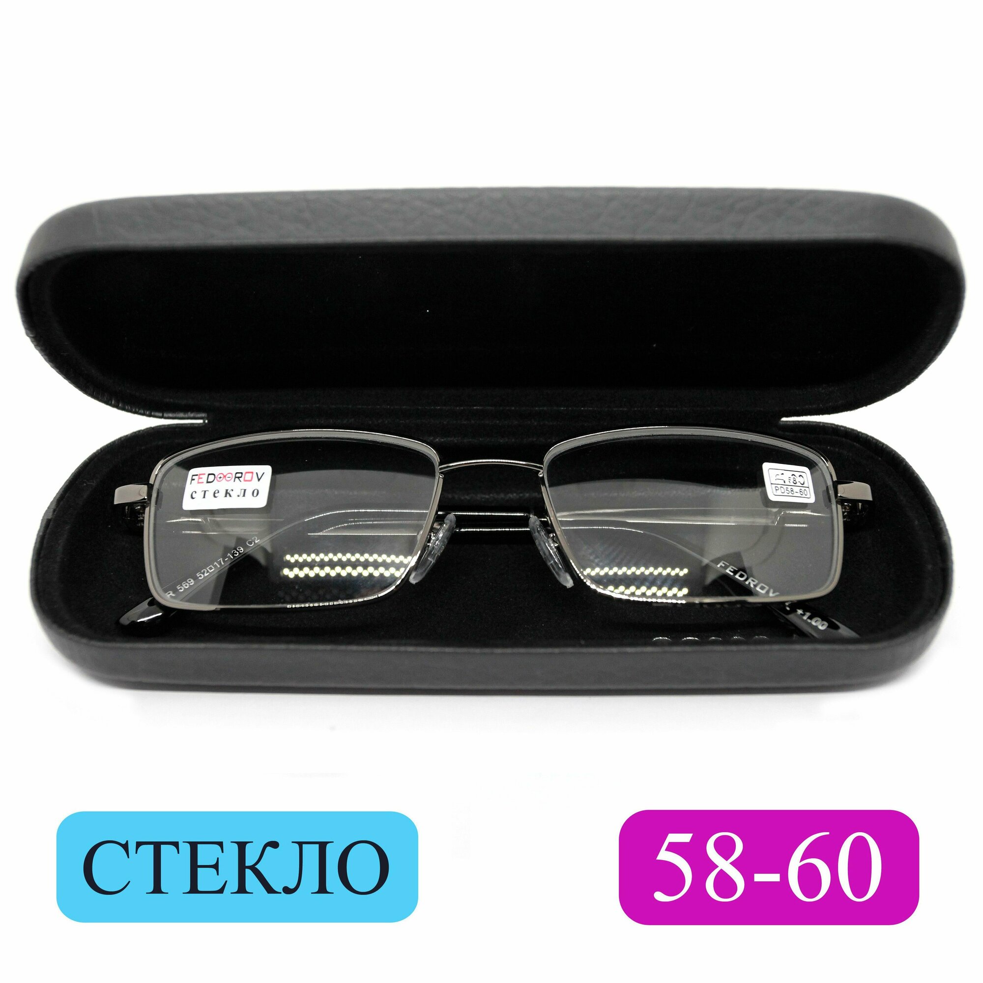 Готовые очки 58-60 стекло с диоптриями (+1.75) Fedrov 569 C2, цвет серый, линза стекло, с футляром, РЦ 58-60