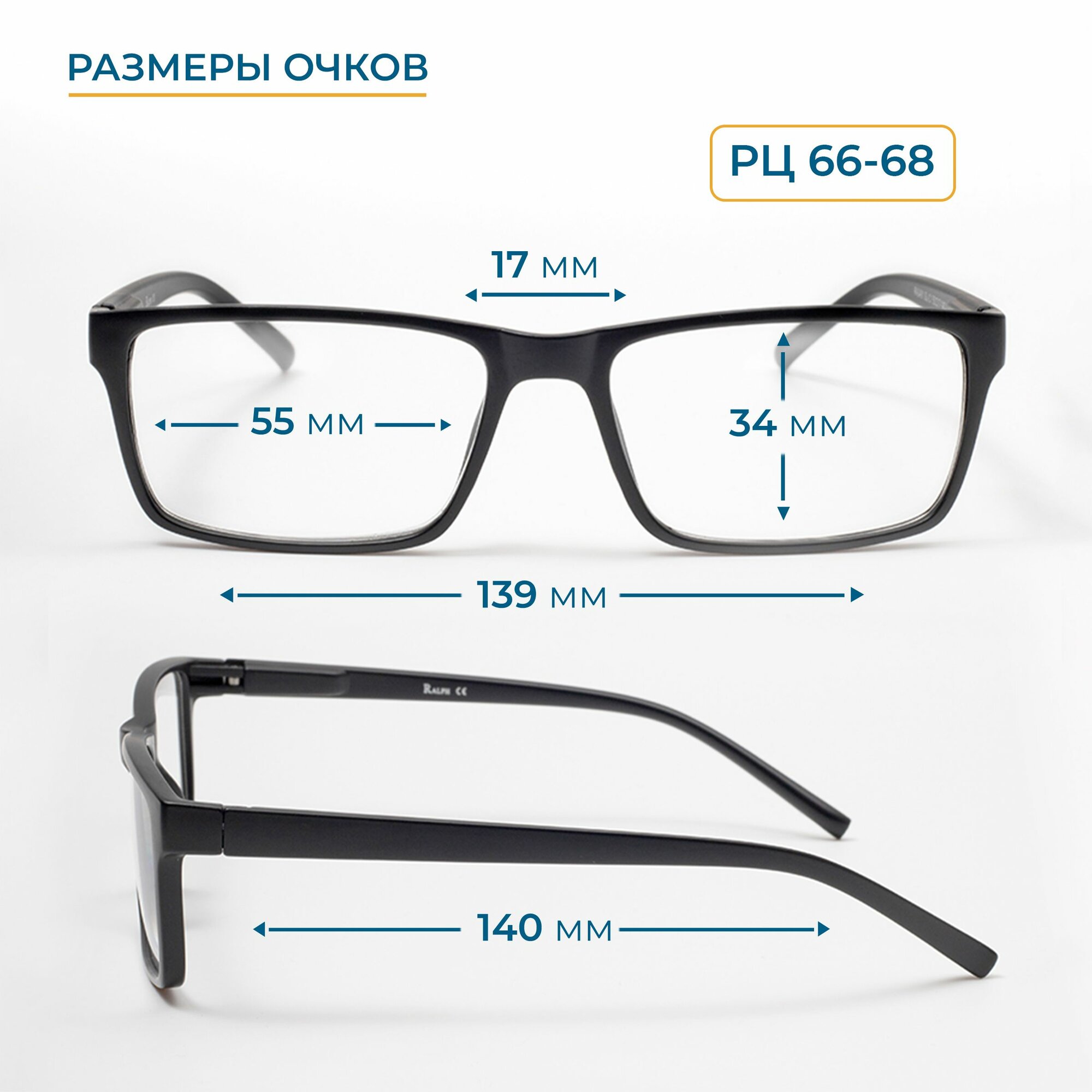 Очки с диоптриями мужские 66-68 (+1.50) RALPH 0491-C1, без футляра, цвет черный, линзы пластик, РЦ 66-68