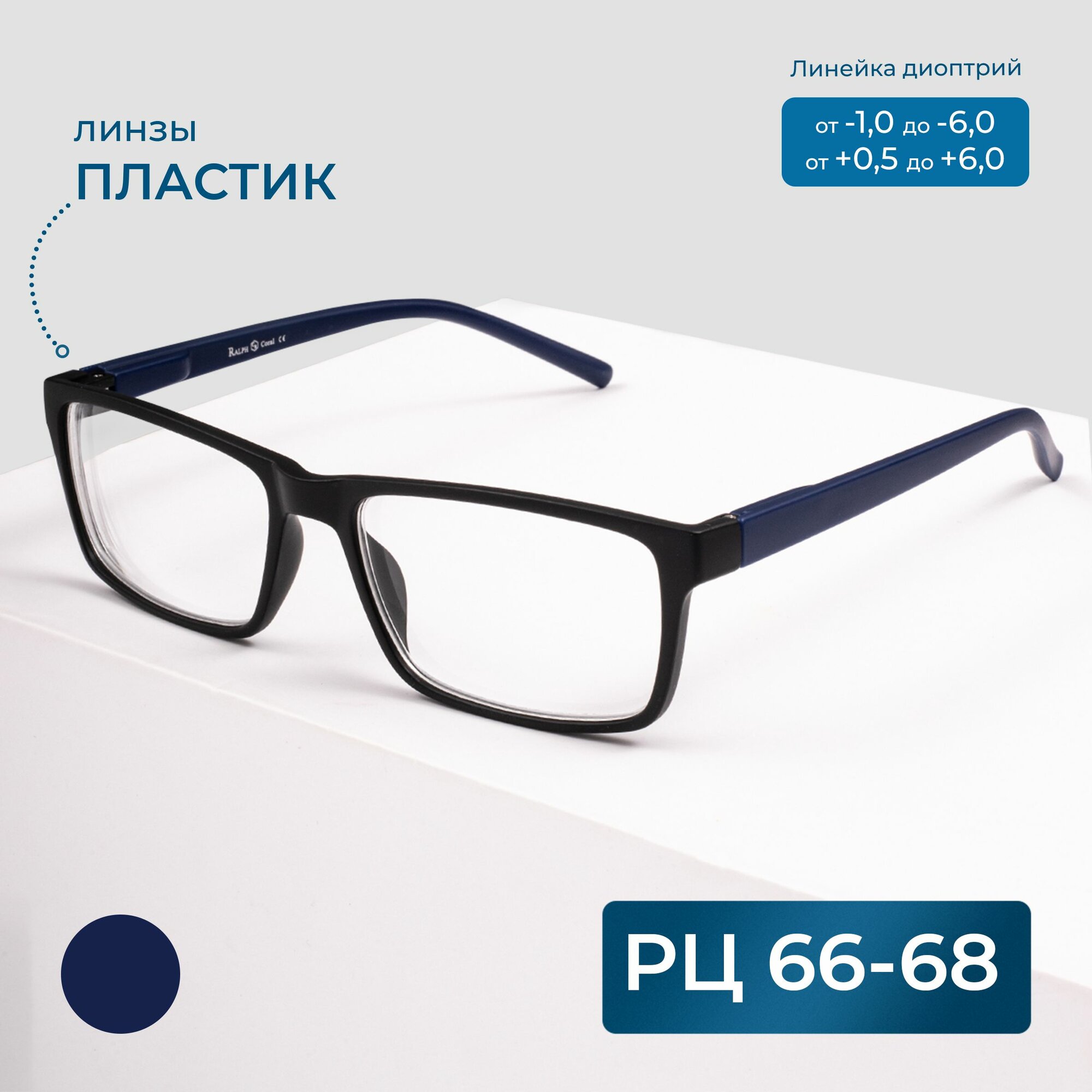 Очки с диоптриями мужские 66-68 (+1.50) RALPH 0491-C2, без футляра, цвет черно-синий, линзы пластик, РЦ 66-68