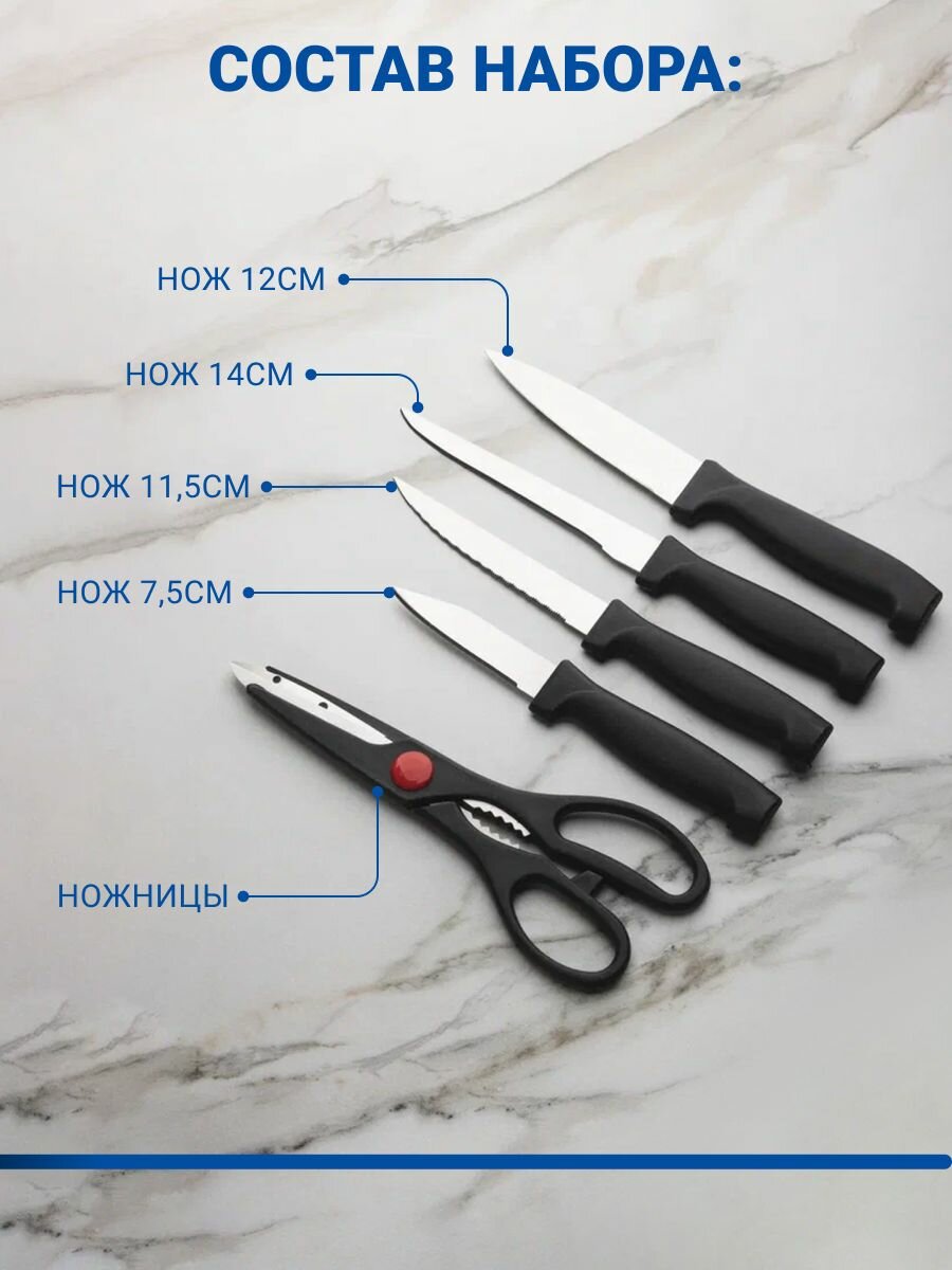 Набор ножей кухонных 6 предметов на подставке, универсальные ножи для мяса, овощей
