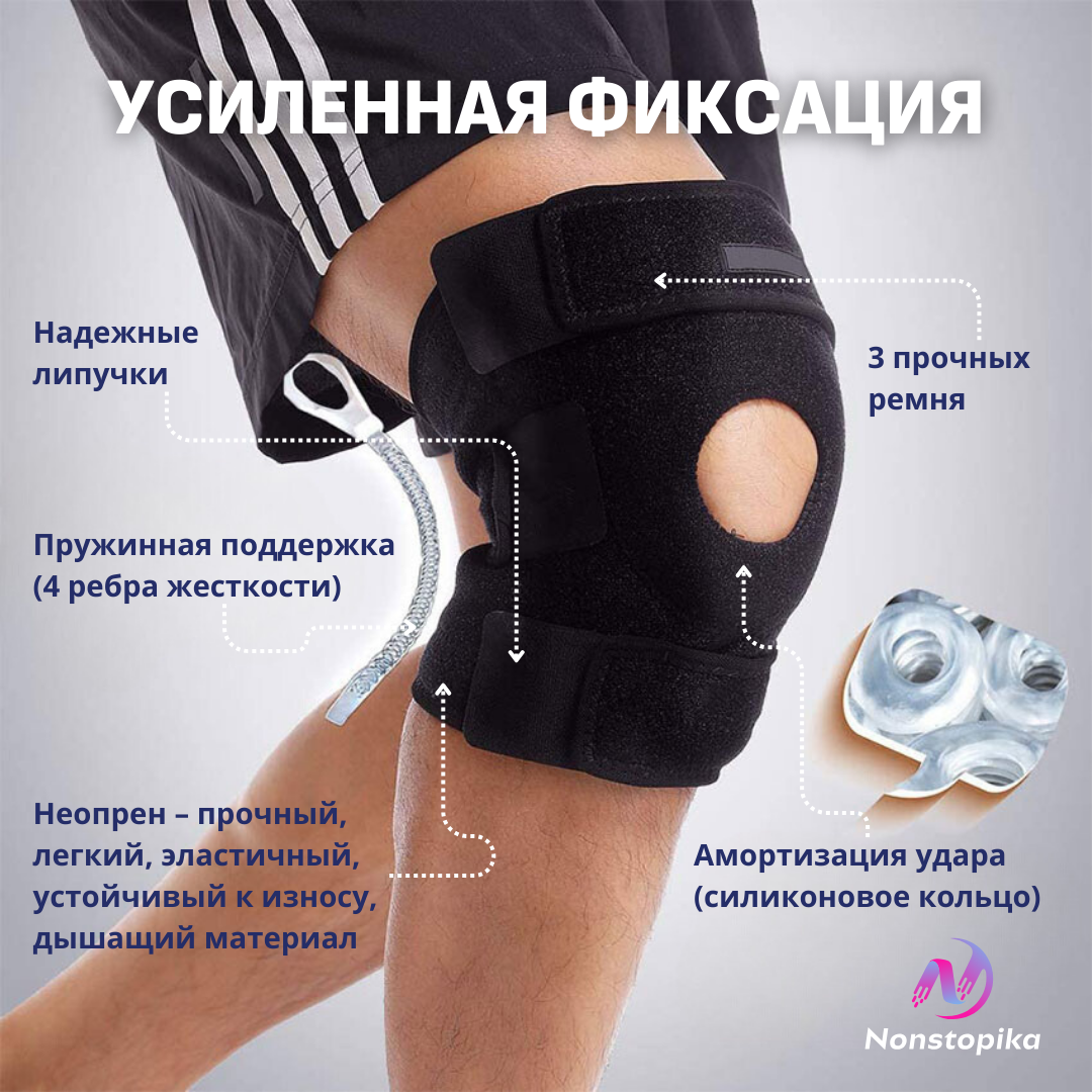 Наколенник на липучках регулируемый ортопедический Nonstopika Sport Fit Black компрессионный с металлическим укрепителем, 1 шт интересное: