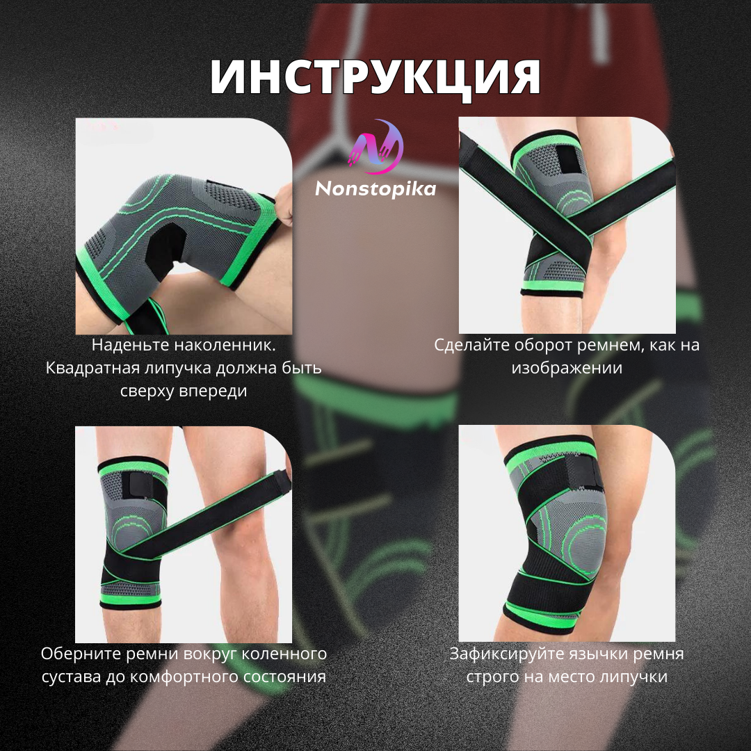 Наколенник на липучках регулируемый ортопедический Nonstopika Sport Fit Black компрессионный с металлическим укрепителем, 1 шт