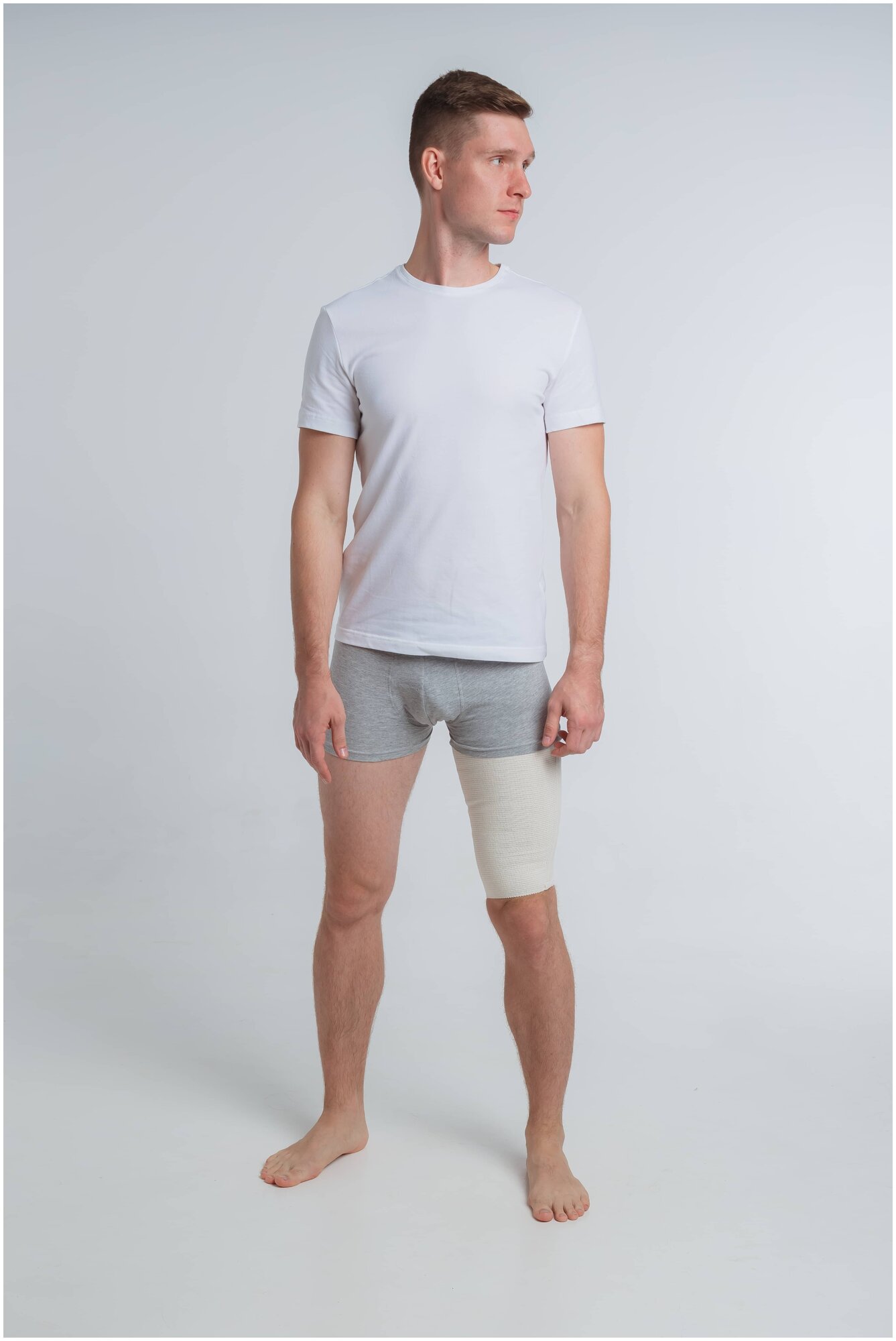 Купить Бандаж на бедро компрессионный - повязка для профилактики и лечения варикоза, воспалений, растяжений. Бежевый, 1 размер.