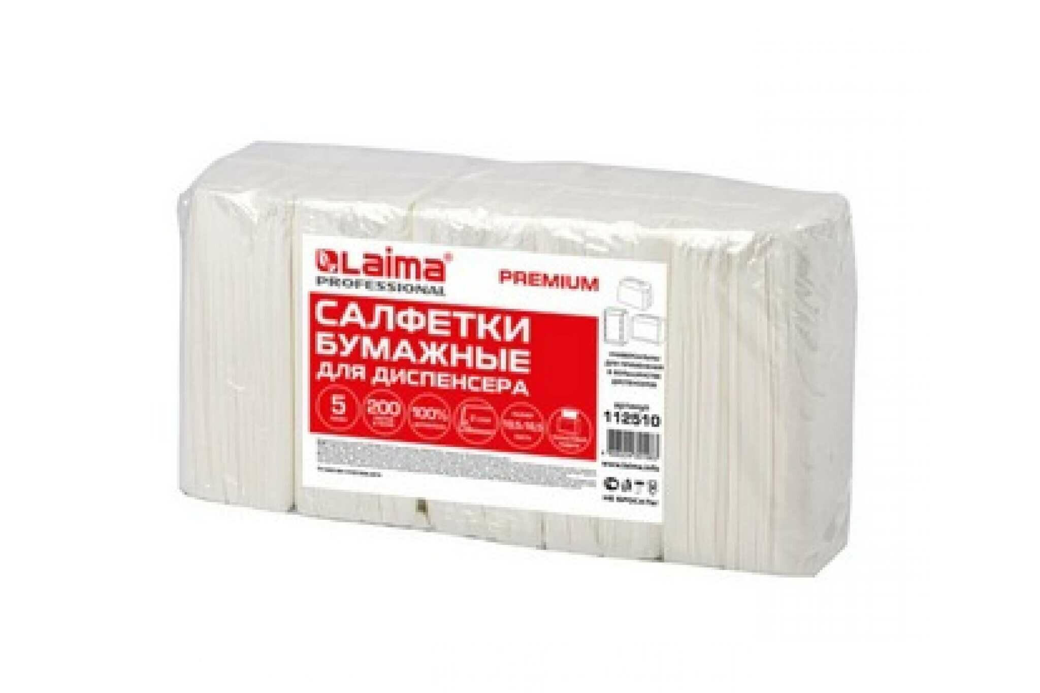 Купить Лайма Салфетки бум. для диспенсера, N4 PREMIUM, 2-сл, комплект 5пач по 200шт., 19,5х16,5см, 112510