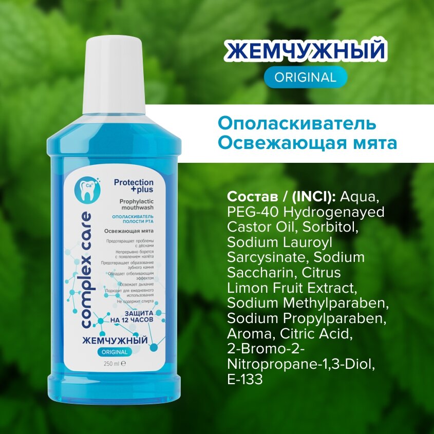 | Состав | Aqua, PEG-40 Hydrogenayed Castor Oil, Sorbitol, Sodium Lauroyl Sarcysinate, Sodium Saccharin, Citrus Limon Fruit Extract, Sodium Methylparaben, Sodium Propylparaben, Aroma, Citric Acid, 2-Bromo-2-Nitropropane-1,3-Diol, E-133. |