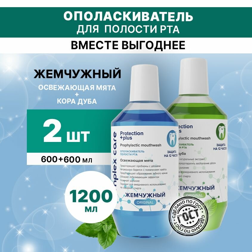 Ополаскиватель для полости рта Жемчужный Кора дуба и Ледяная мята 2 штуки по 600 мл