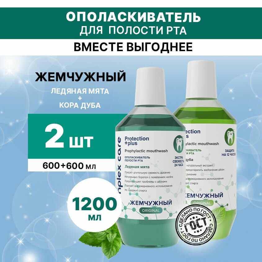 Ополаскиватель для полости рта Жемчужный Кора дуба и Освежающая мята 2 штуки по 600 мл