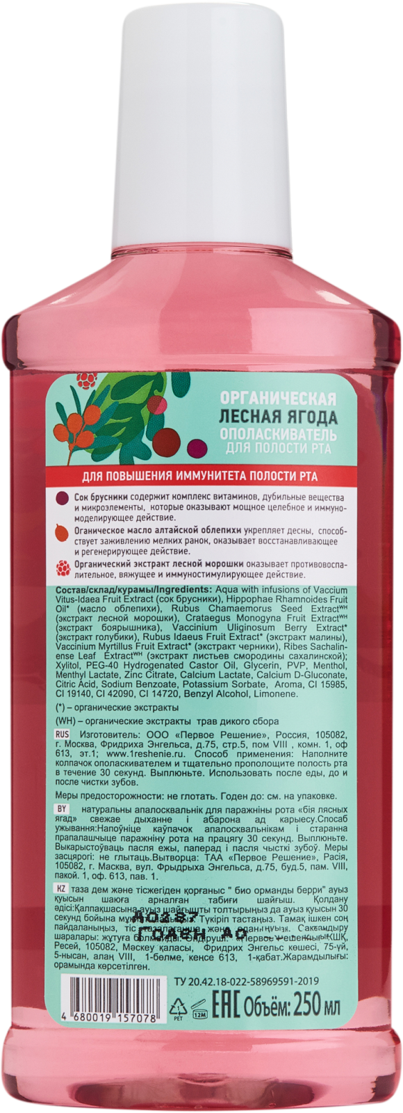 | Способ применения | наполните колпачок ополаскивателем и тщательно прополощите полость рта в течение 30 секунд. Выплюньте. Использовать до и после еды, до и после чистки зубов. |