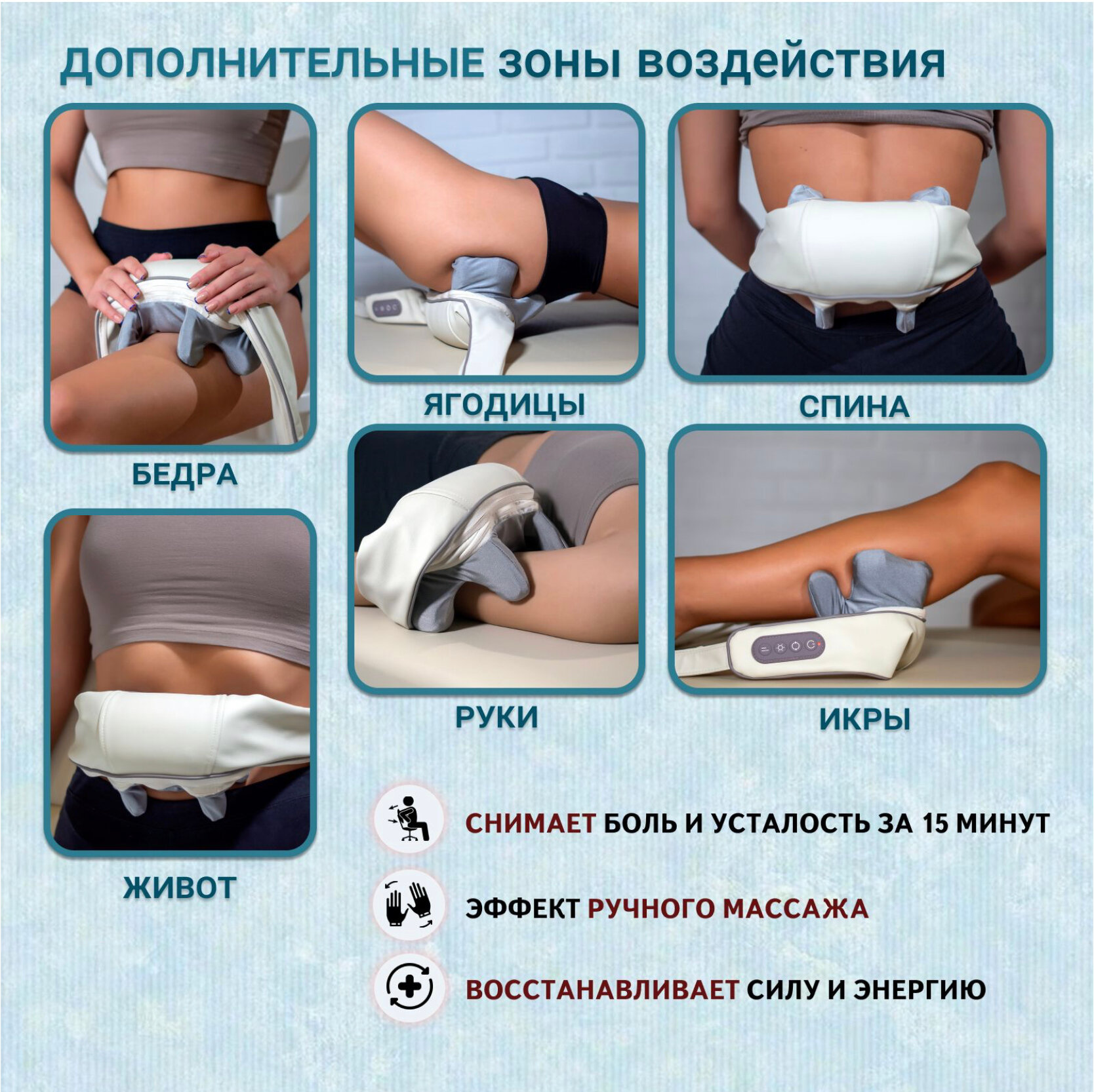 | Вид массажа | вибрационный / механический / расслабляющий / рефлекторный |
