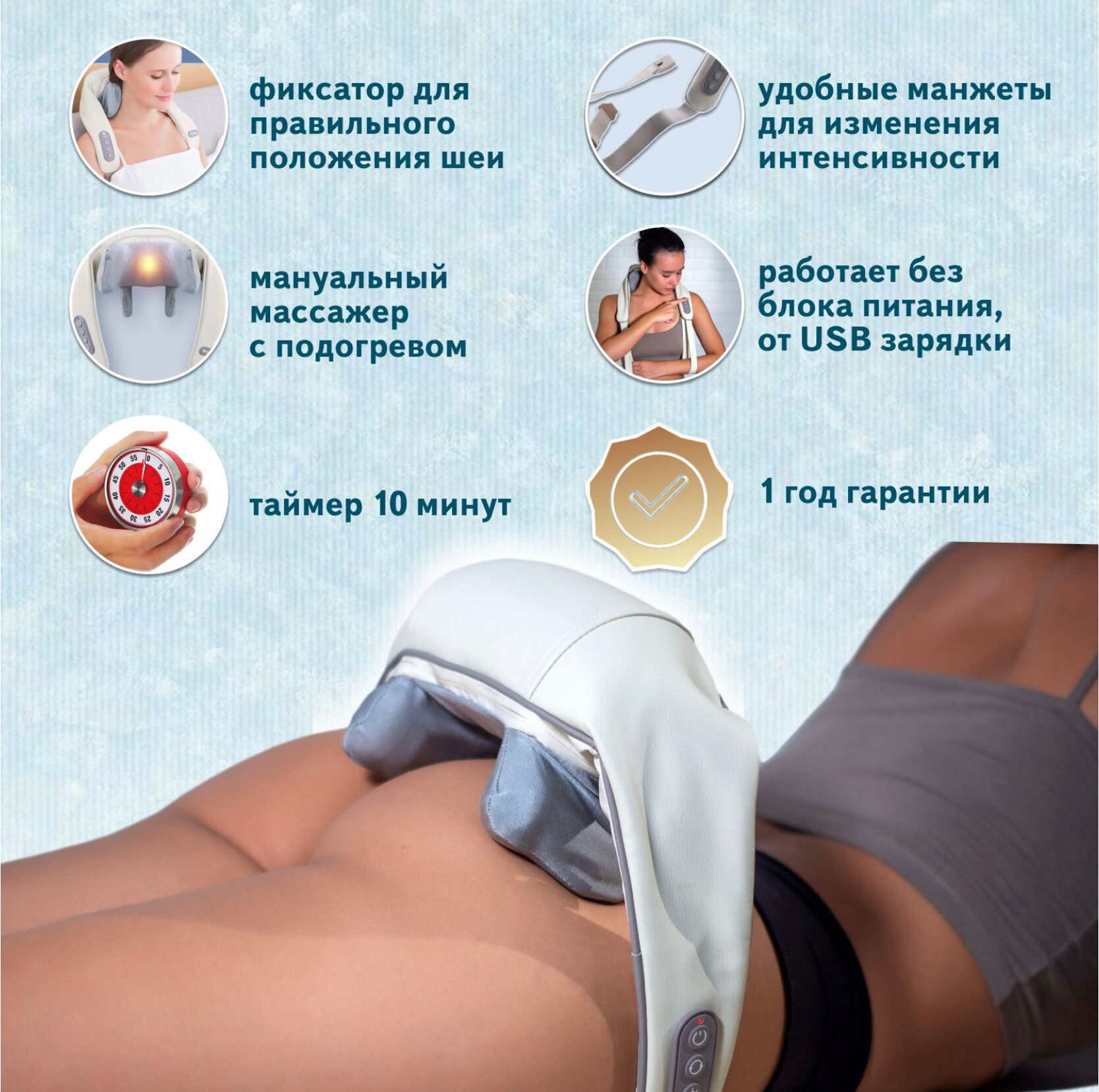 | Зона массажа | бедра / голова / плечи / поясница / руки / спина / шея |