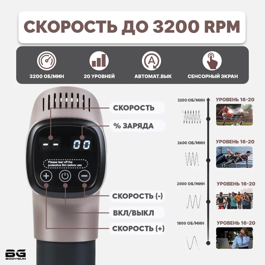 BODYGUN профессиональный перкуссионный массажер для тела и спины, ударный вибромассажер, вибрационный электрический массажный пистолет интересное: