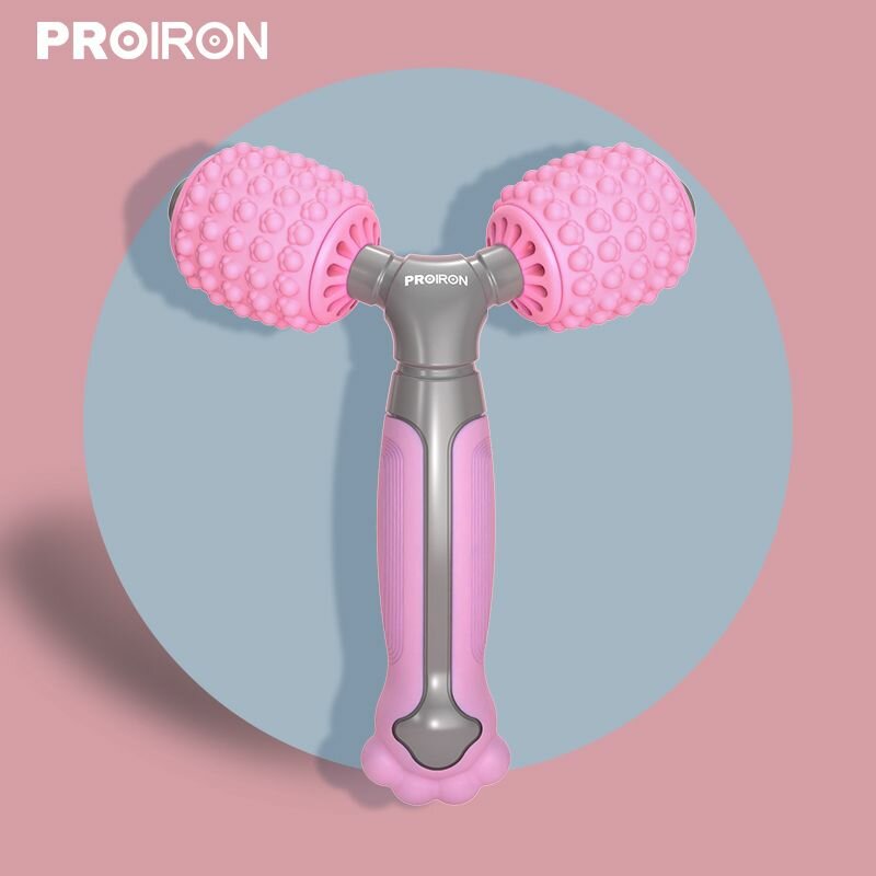 Купить Массажер для тела, роликовый, антицеллюлитный, Y-образный, PROIRON, серо-розовый